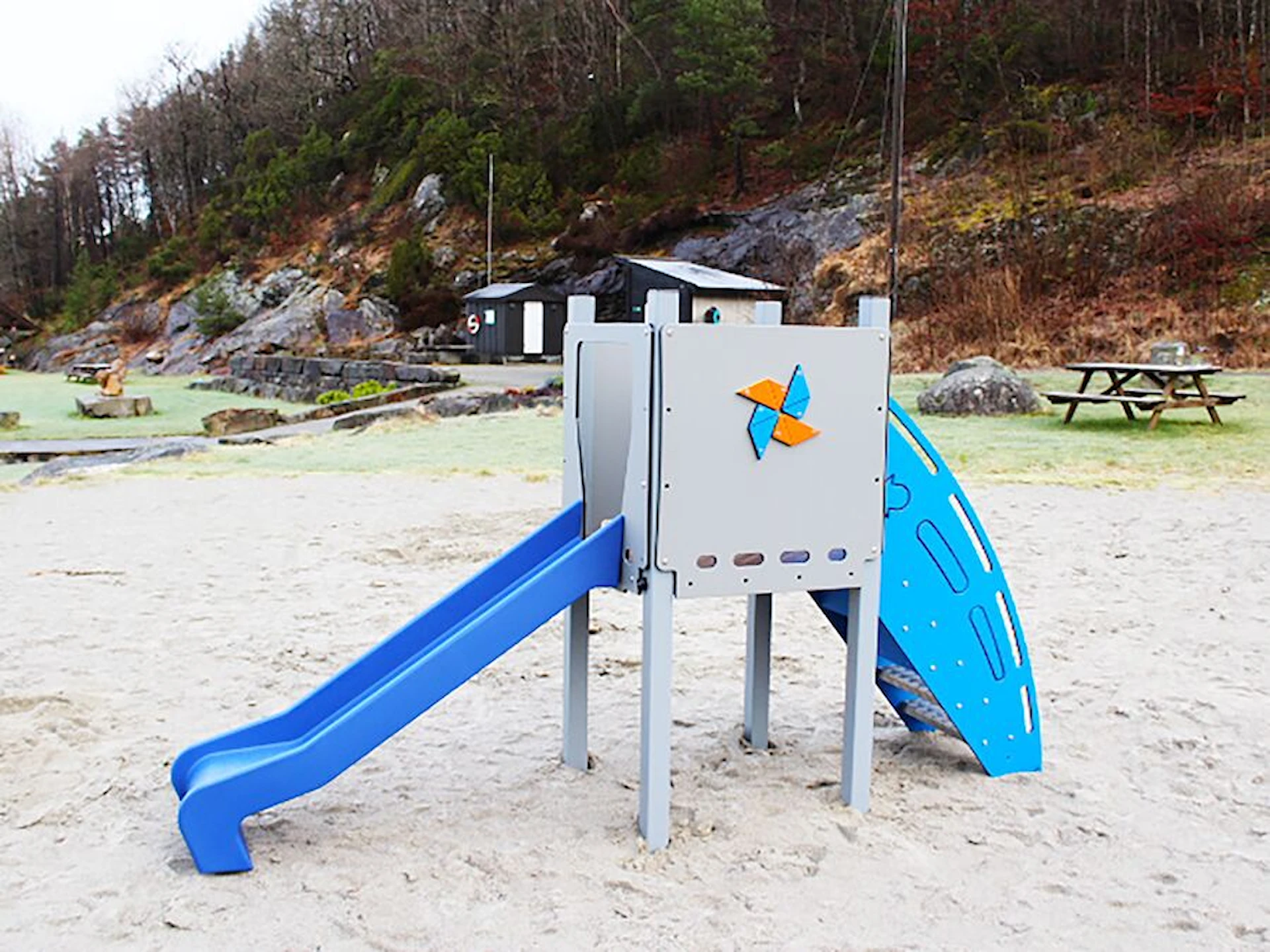 Däremot har vi många produkter utan trä som kan levereras i stort sett omgående, exempelvis Boulder Rocks, gungor, mål, basket, bordtennis, fristående rutschar, klätternät, studsmattor, bänkbord med mera.