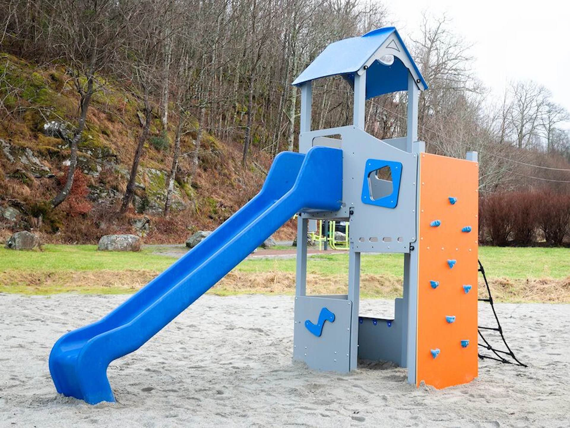 Däremot har vi många produkter utan trä som kan levereras i stort sett omgående, exempelvis Boulder Rocks, gungor, mål, basket, bordtennis, fristående rutschar, klätternät, studsmattor, bänkbord med mera.