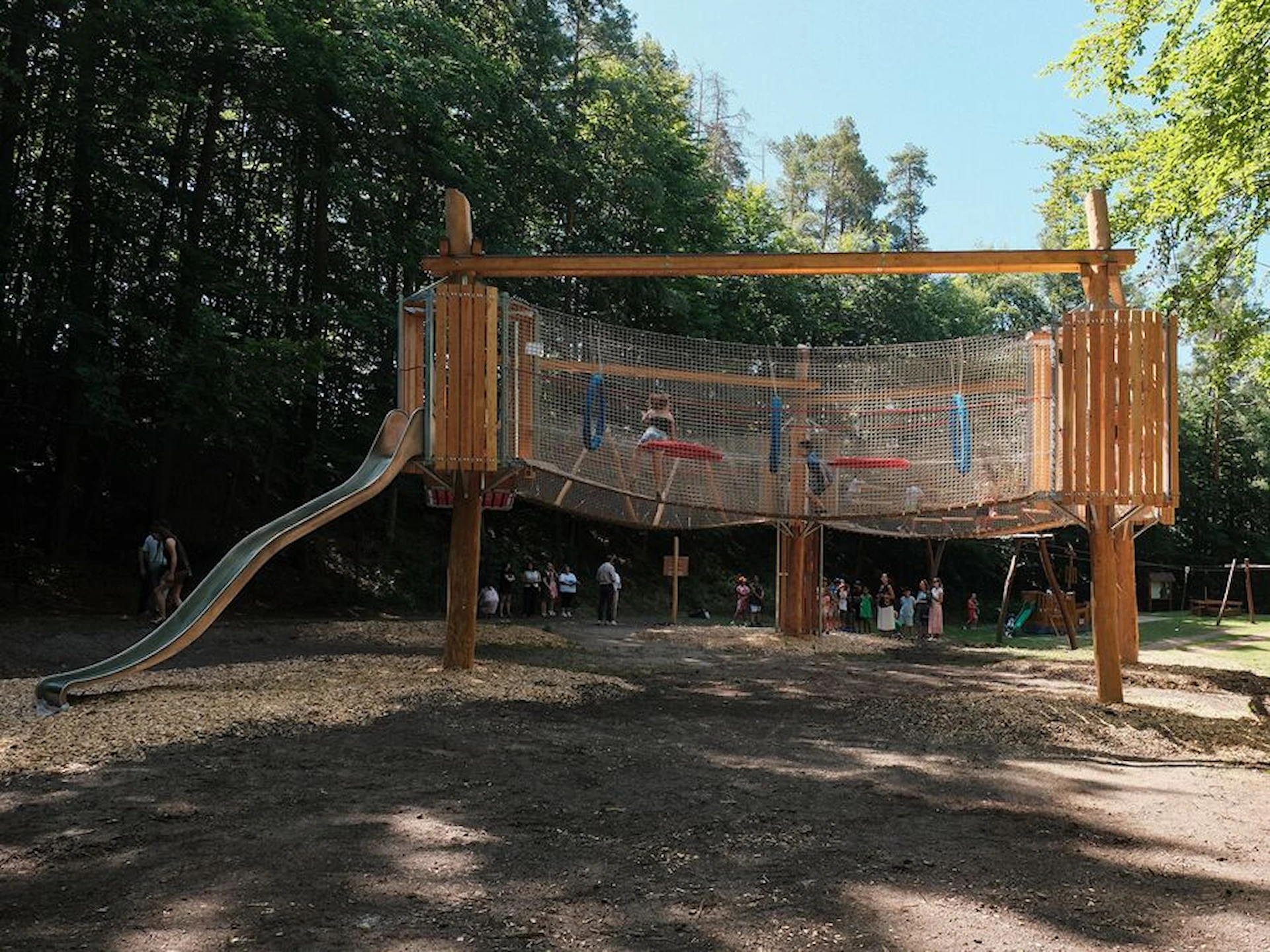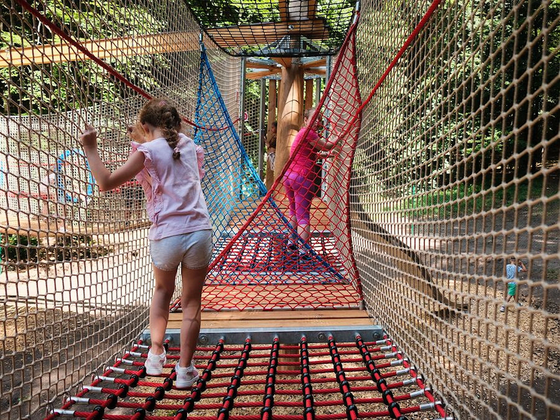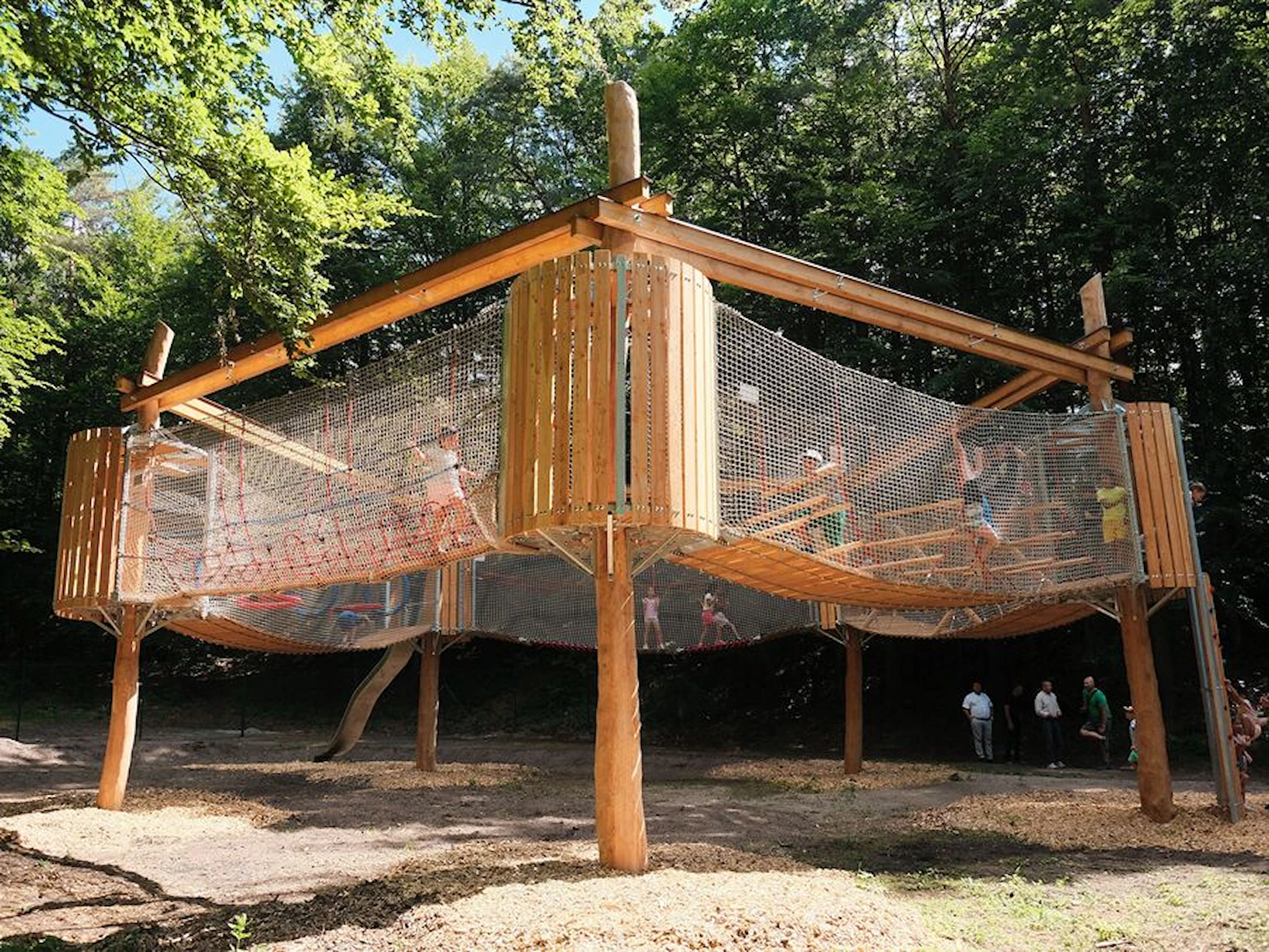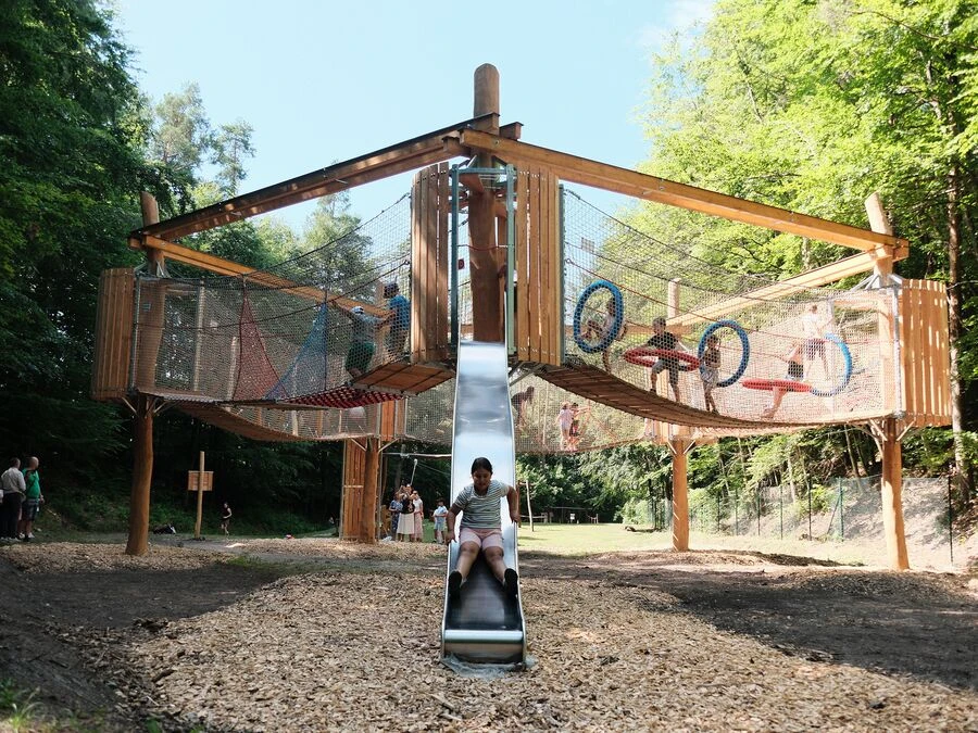 Trots sitt mindre format erbjuder Amaze Pentagon en dynamisk lekupplevelse. De fem hindren utmanar koordination, styrka och samarbete – och den öppna nätstrukturen ger både trygghet och överblick. Konstruktionen blir ett visuellt blickfång samtidigt som den integreras naturligt i park- och skogsmiljöer.