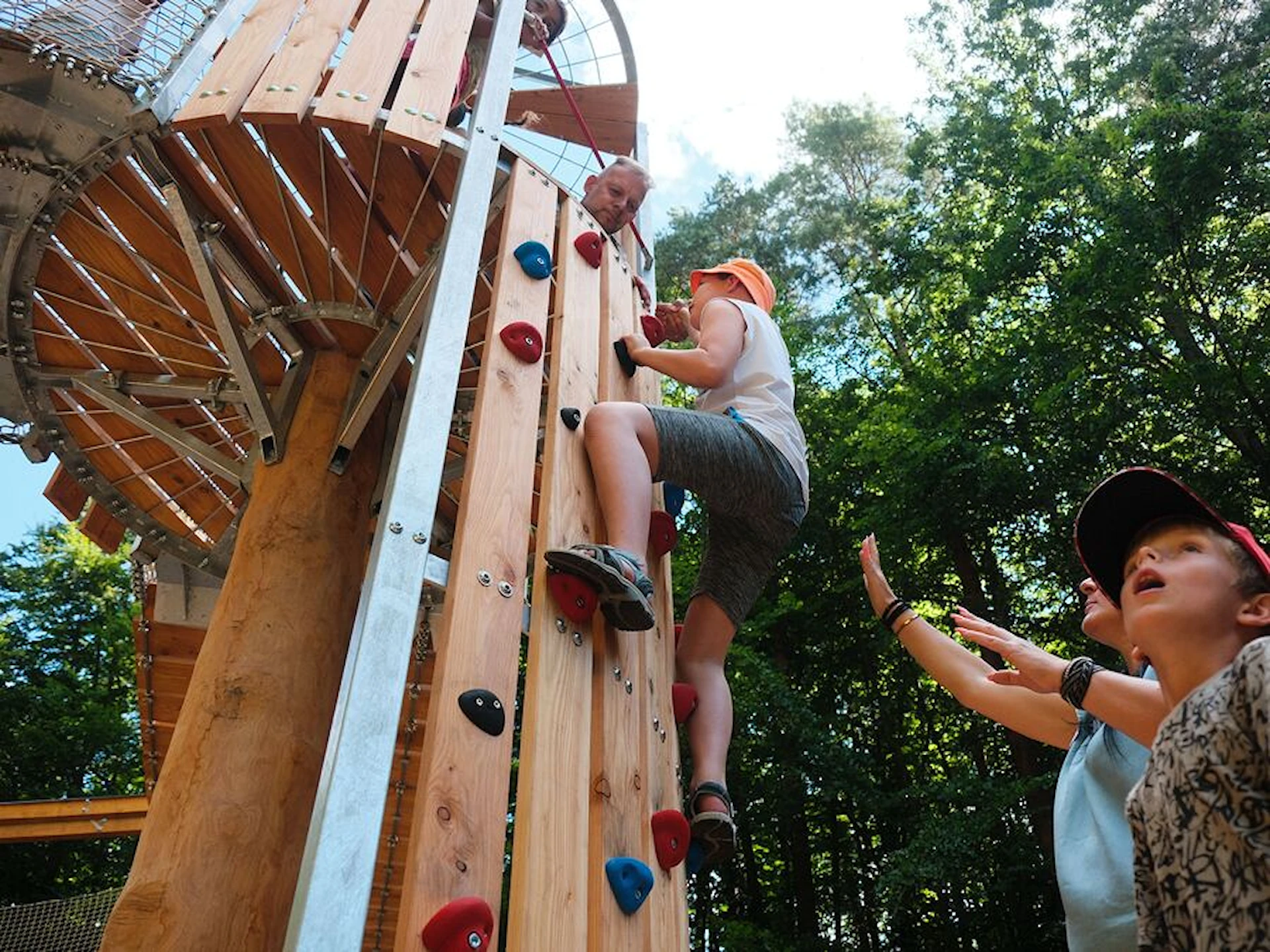 Med en höjd på cirka 7 meter och en regelbunden femhörning där varje sida är cirka 8 meter skapas en tydlig och arkitektonisk form i landskapet. Lekplatsen nås via en mini-klättervägg eller repstege, och kan kompletteras med rutschkana för en snabb väg ner igen.