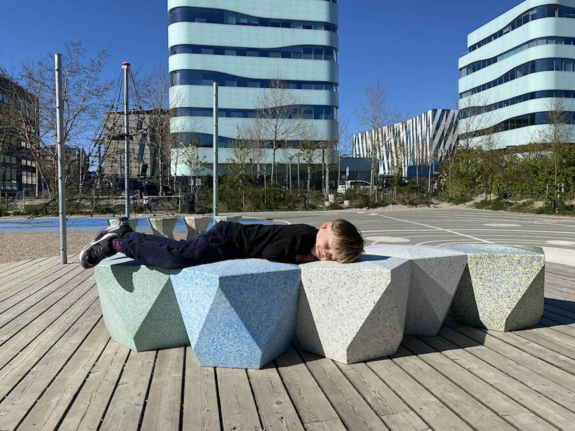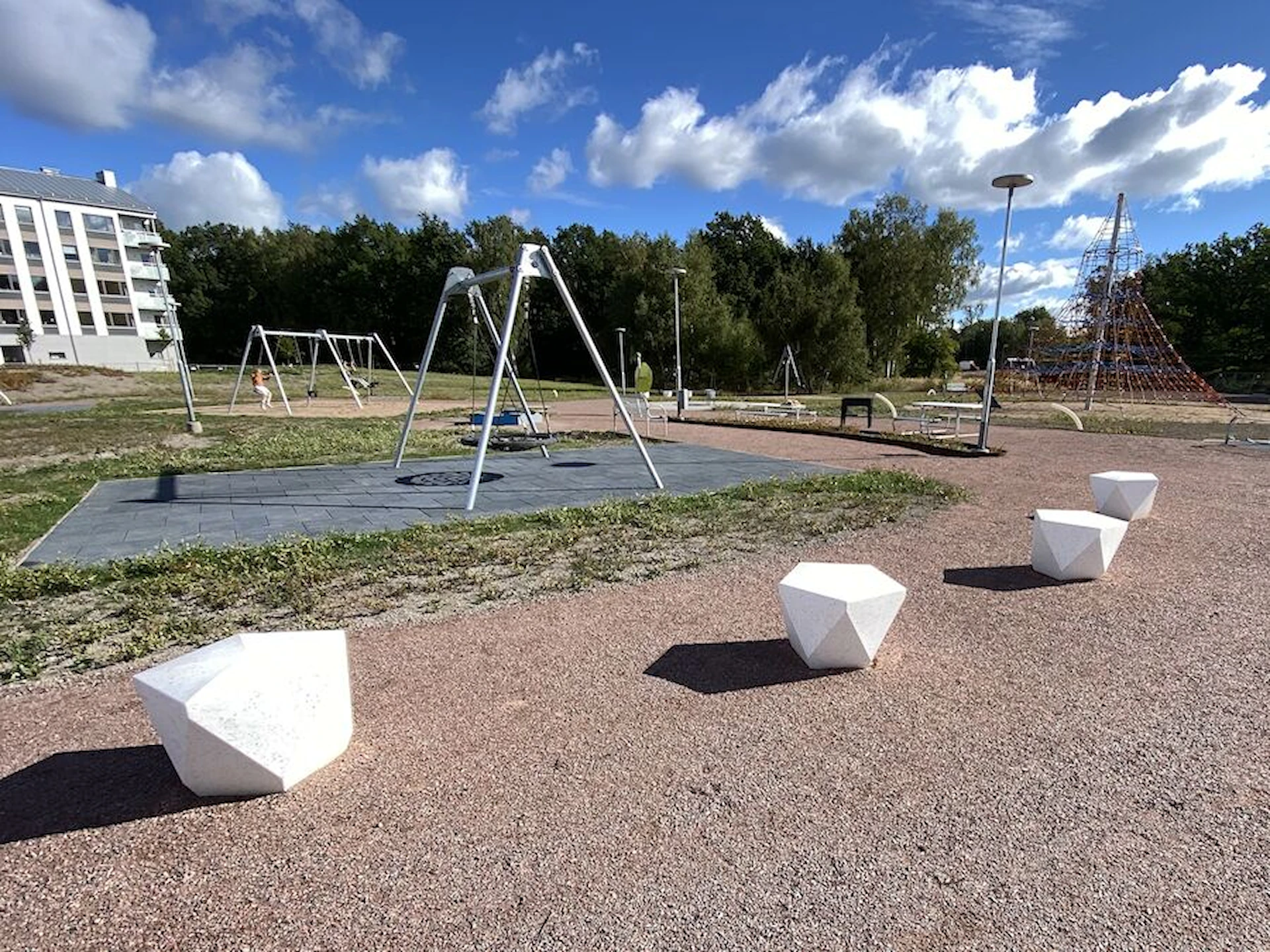 Däremot har vi många produkter utan trä som kan levereras i stort sett omgående, exempelvis Boulder Rocks, gungor, mål, basket, bordtennis, fristående rutschar, klätternät, studsmattor, bänkbord med mera.