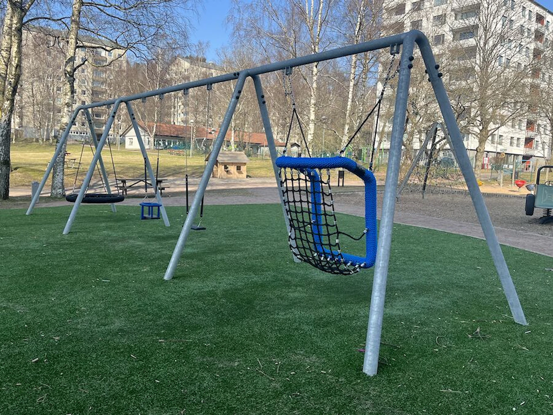 Däremot har vi många produkter utan trä som kan levereras i stort sett omgående, exempelvis Boulder Rocks, gungor, mål, basket, bordtennis, fristående rutschar, klätternät, studsmattor, bänkbord med mera.