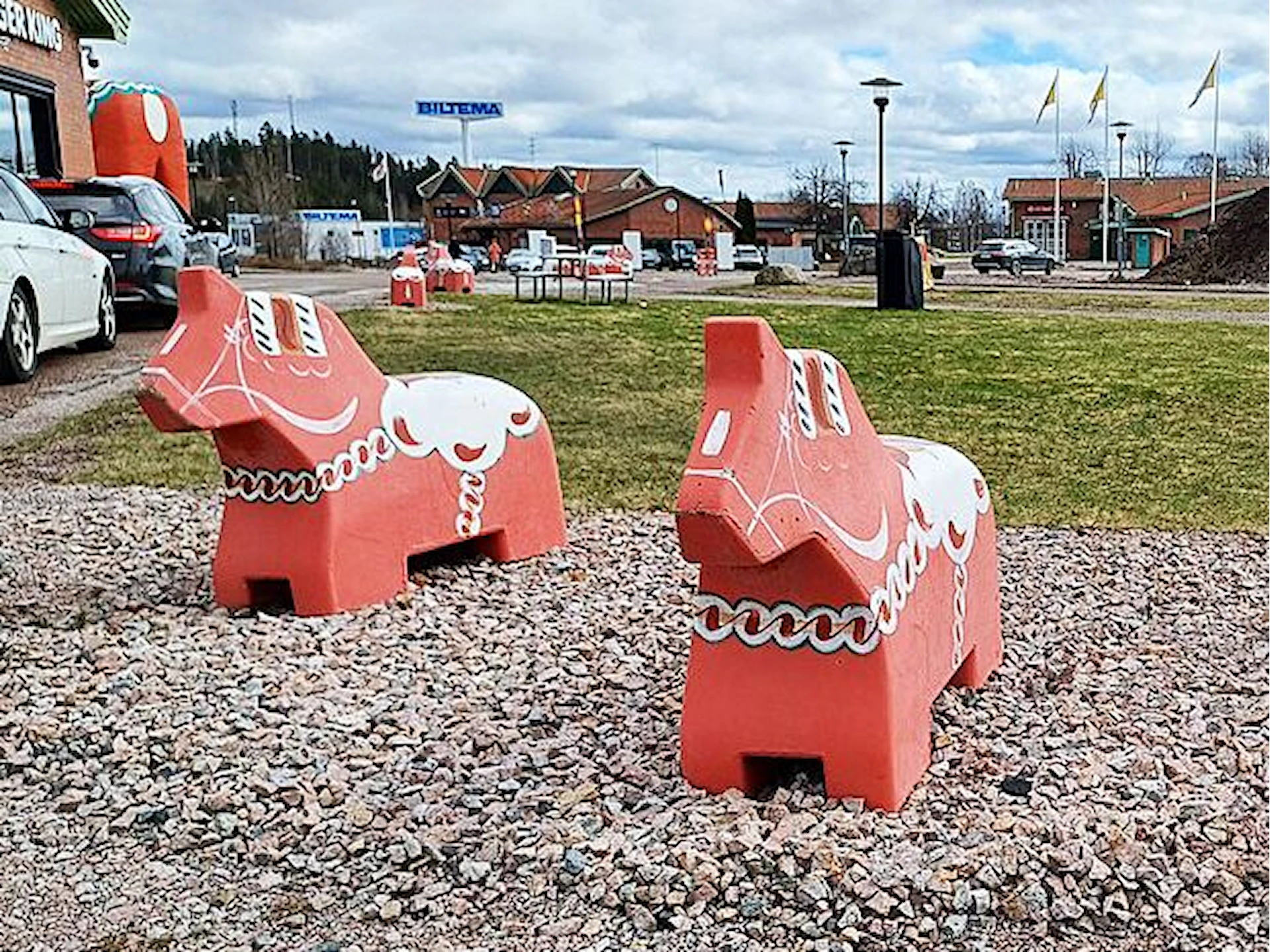 Klassisk Dalarna-inspirerad kurbitsdekoration, en stark lokal förankring och ett konstnärligt uttryck.