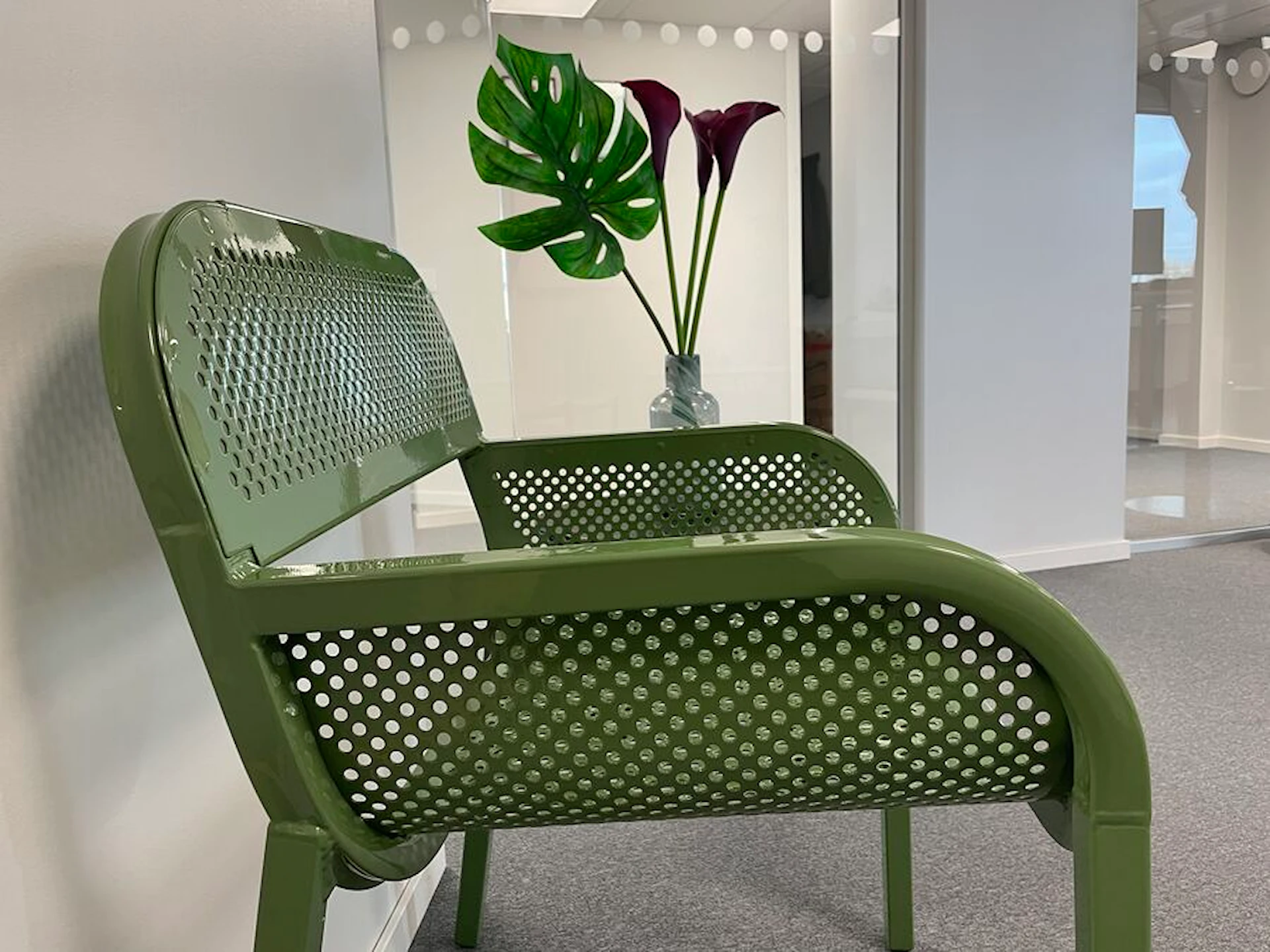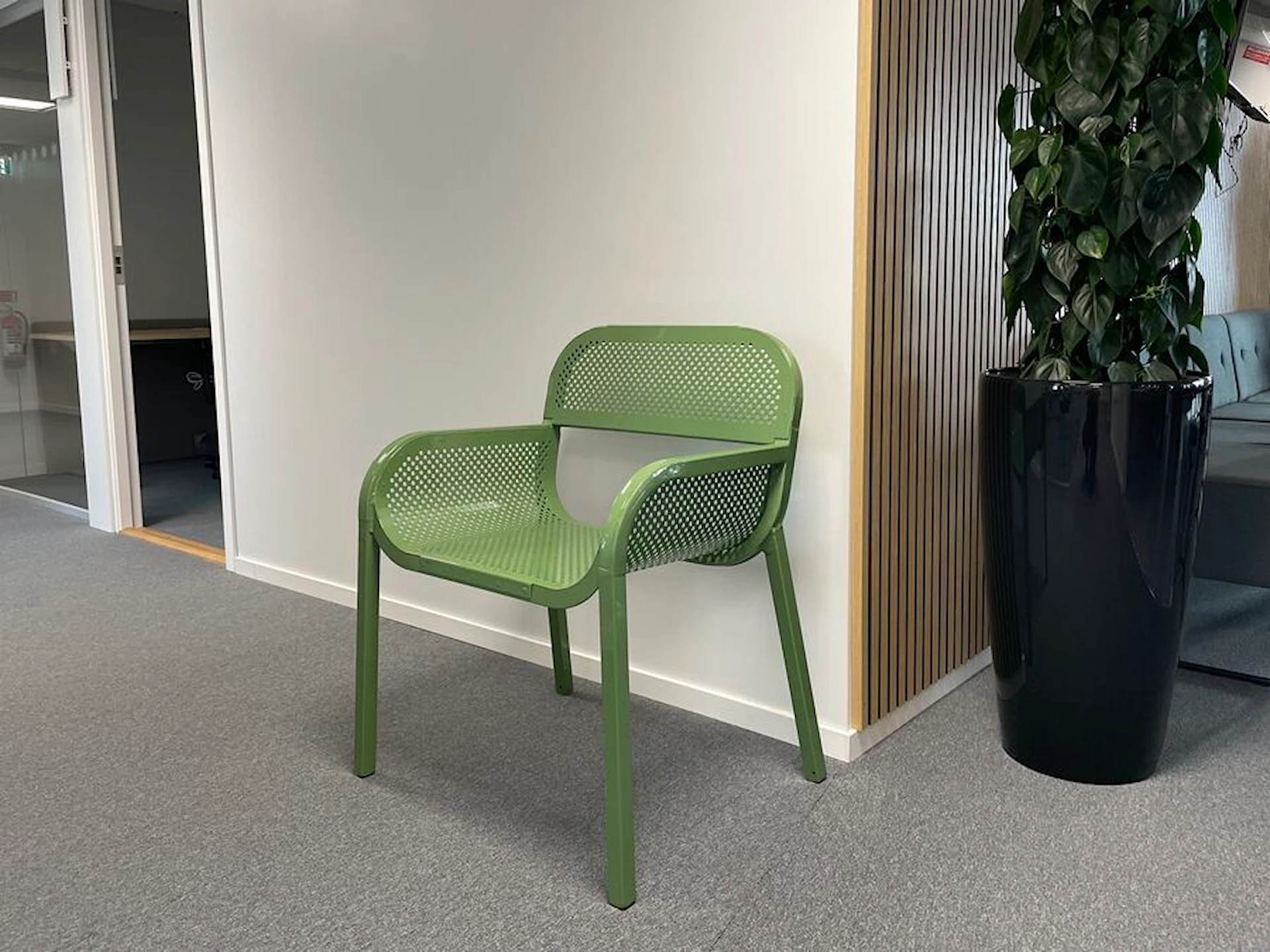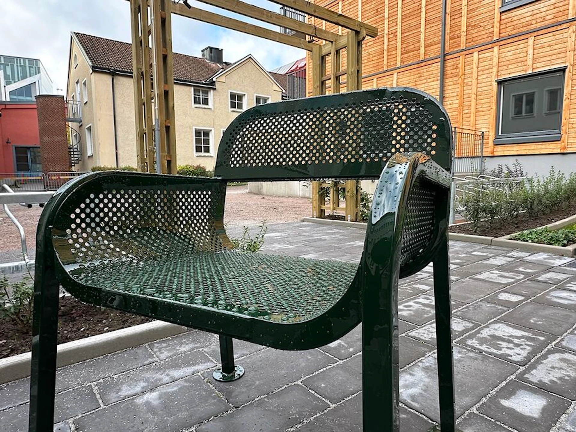 BISTRO Stol kan med fördel kombineras med bord och soffa från samma serie för att skapa en riktig härlig utemiljö. Stolen har armstöd som underlättar när man sätter sig eller reser sig. Både sits och rygg är relativt raka, vilket gör den enklare att använda än mer skålade modeller.
