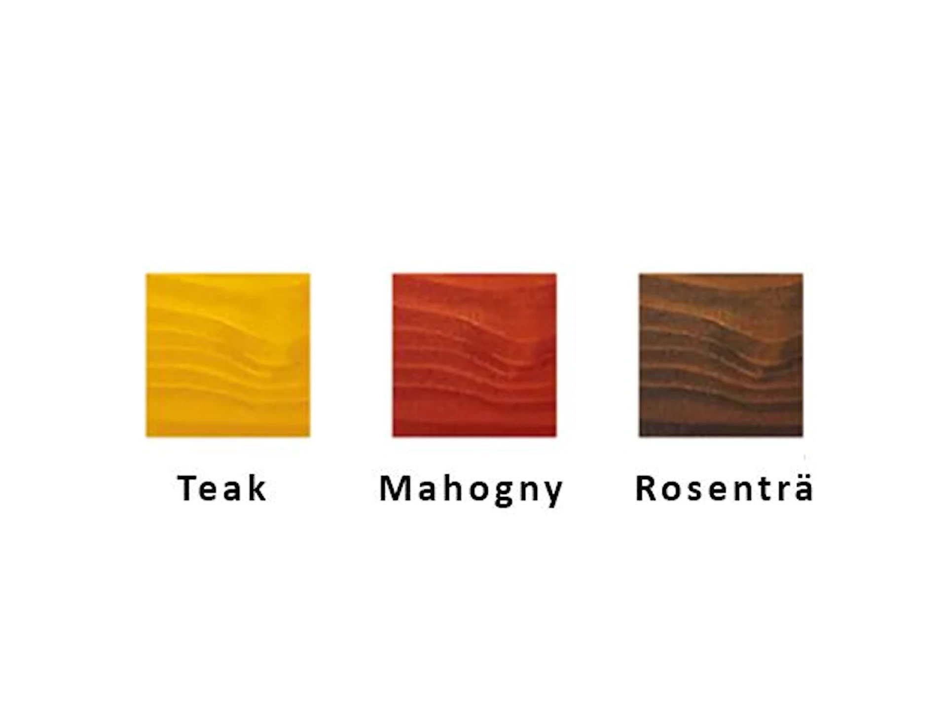 Produkten finns i följande färgalternativ: teak-, mahogny- och rosenträfärg.