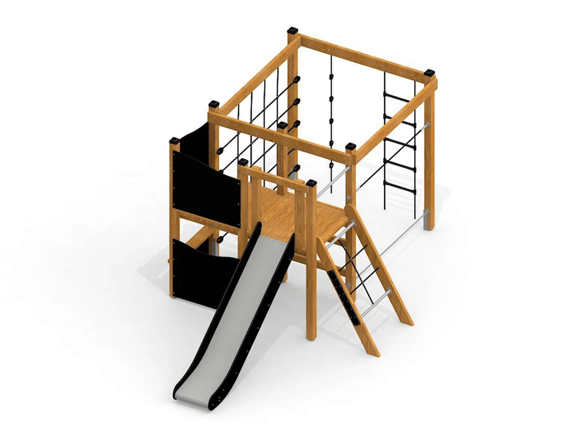 Däremot har vi många produkter utan trä som kan levereras i stort sett omgående, exempelvis Boulder Rocks, gungor, mål, basket, bordtennis, fristående rutschar, klätternät, studsmattor, bänkbord med mera.