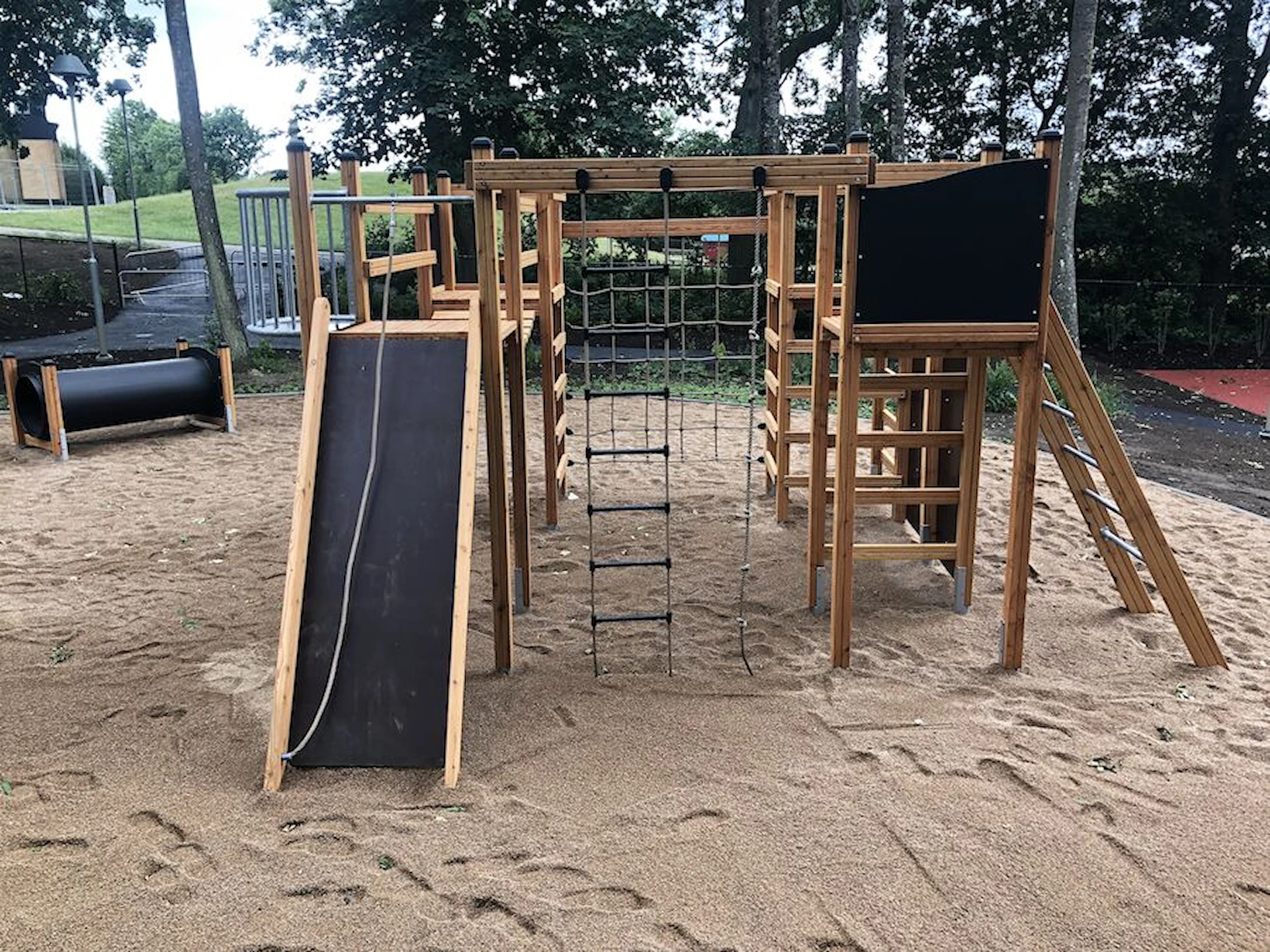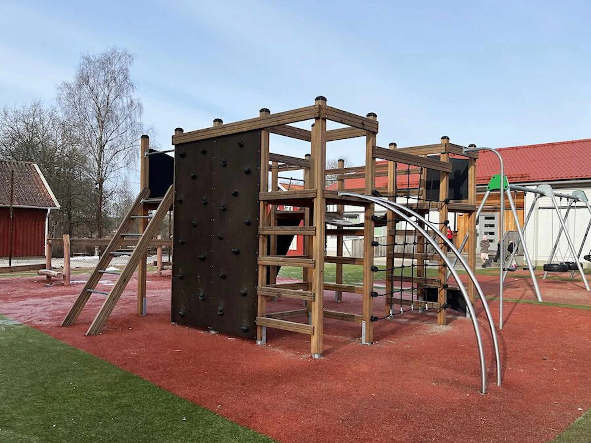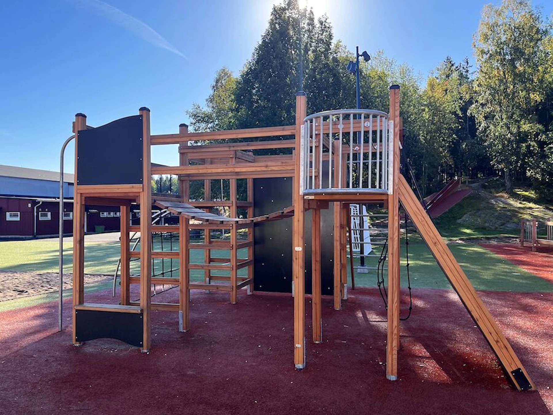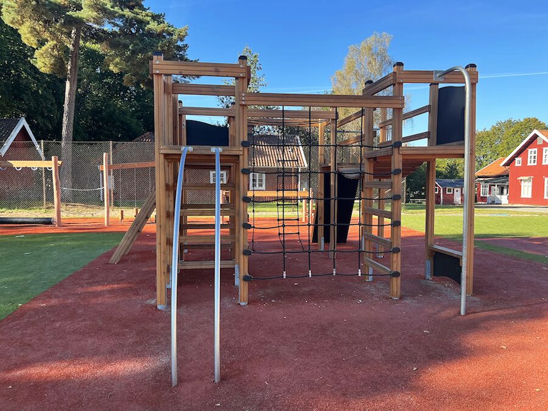 Däremot har vi många produkter utan trä som kan levereras i stort sett omgående, exempelvis Boulder Rocks, gungor, mål, basket, bordtennis, fristående rutschar, klätternät, studsmattor, bänkbord med mera.