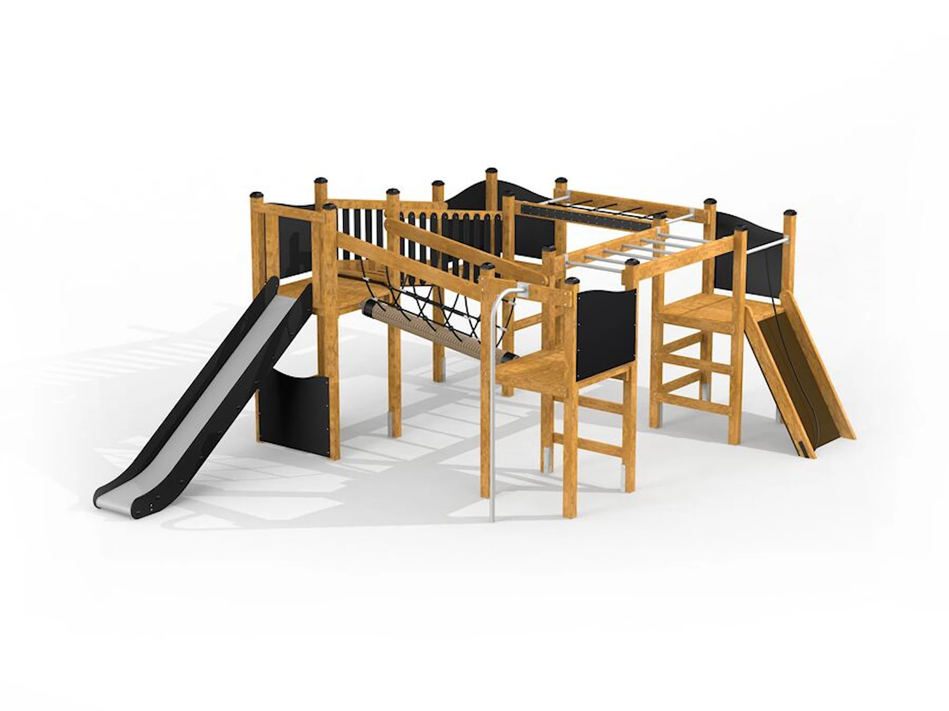 Däremot har vi många produkter utan trä som kan levereras i stort sett omgående, exempelvis Boulder Rocks, gungor, mål, basket, bordtennis, fristående rutschar, klätternät, studsmattor, bänkbord med mera.