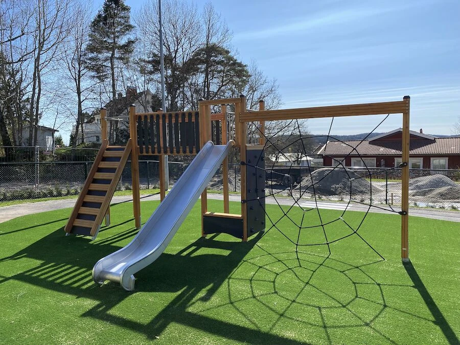 Däremot har vi många produkter utan trä som kan levereras i stort sett omgående, exempelvis Boulder Rocks, gungor, mål, basket, bordtennis, fristående rutschar, klätternät, studsmattor, bänkbord med mera.