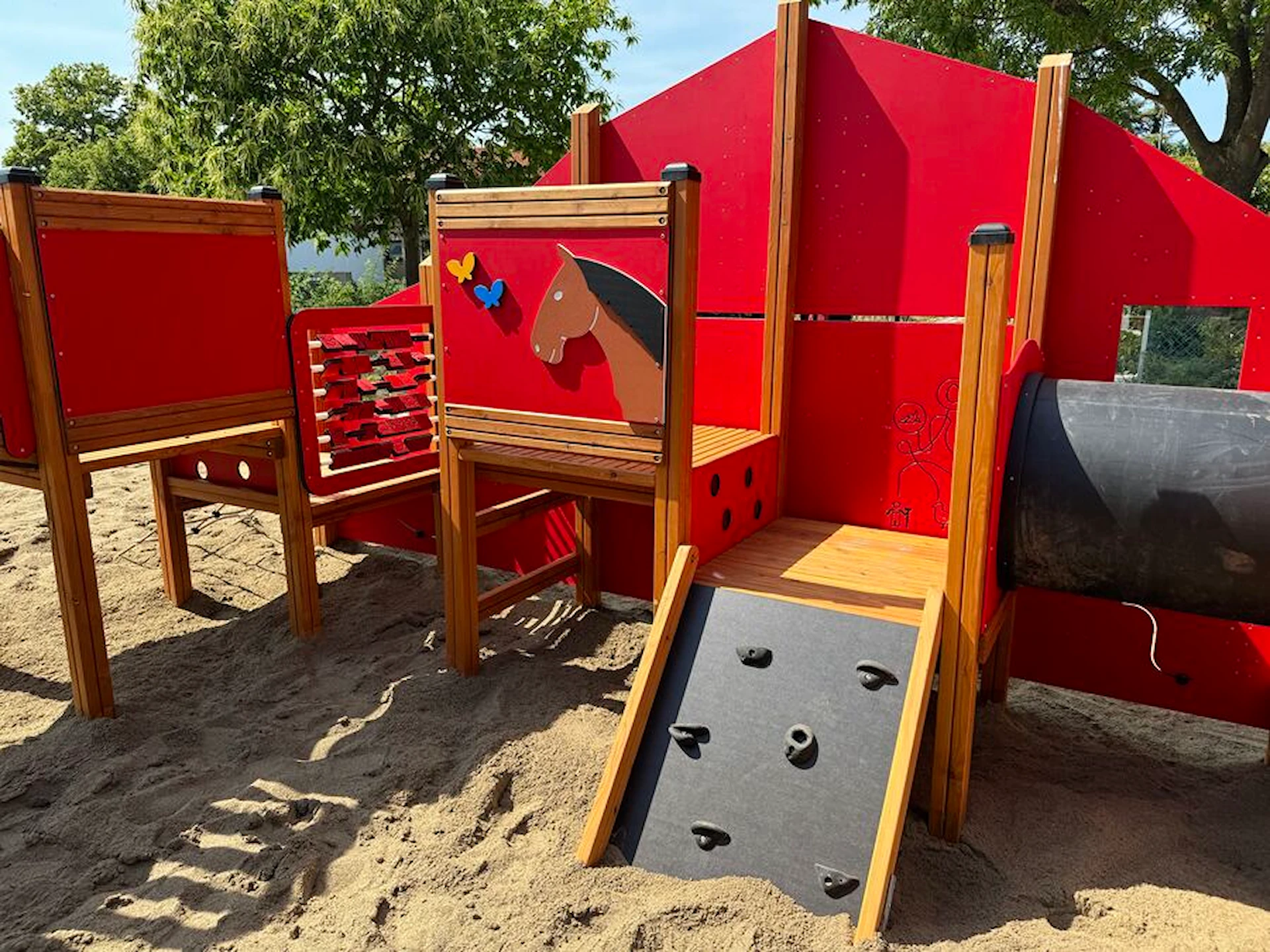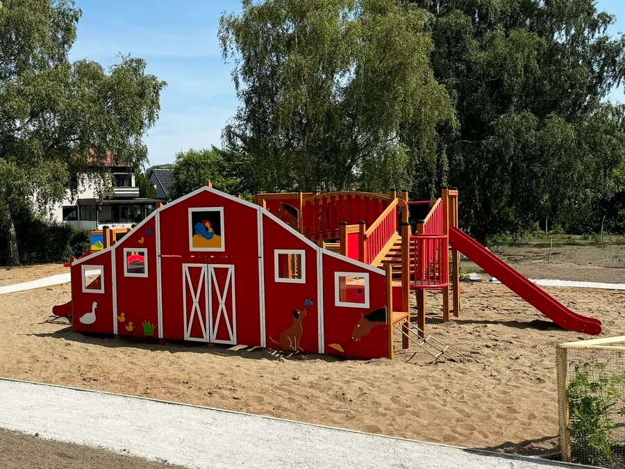 Byggd i robusta material som klarar både väder och intensiv användning, är Bondgården skapad för långvarig lekglädje. Den röda ladugårdsdesignen och de charmiga djurdetaljerna gör lekställningen till en naturlig och iögonfallande mittpunkt i din utemiljö.