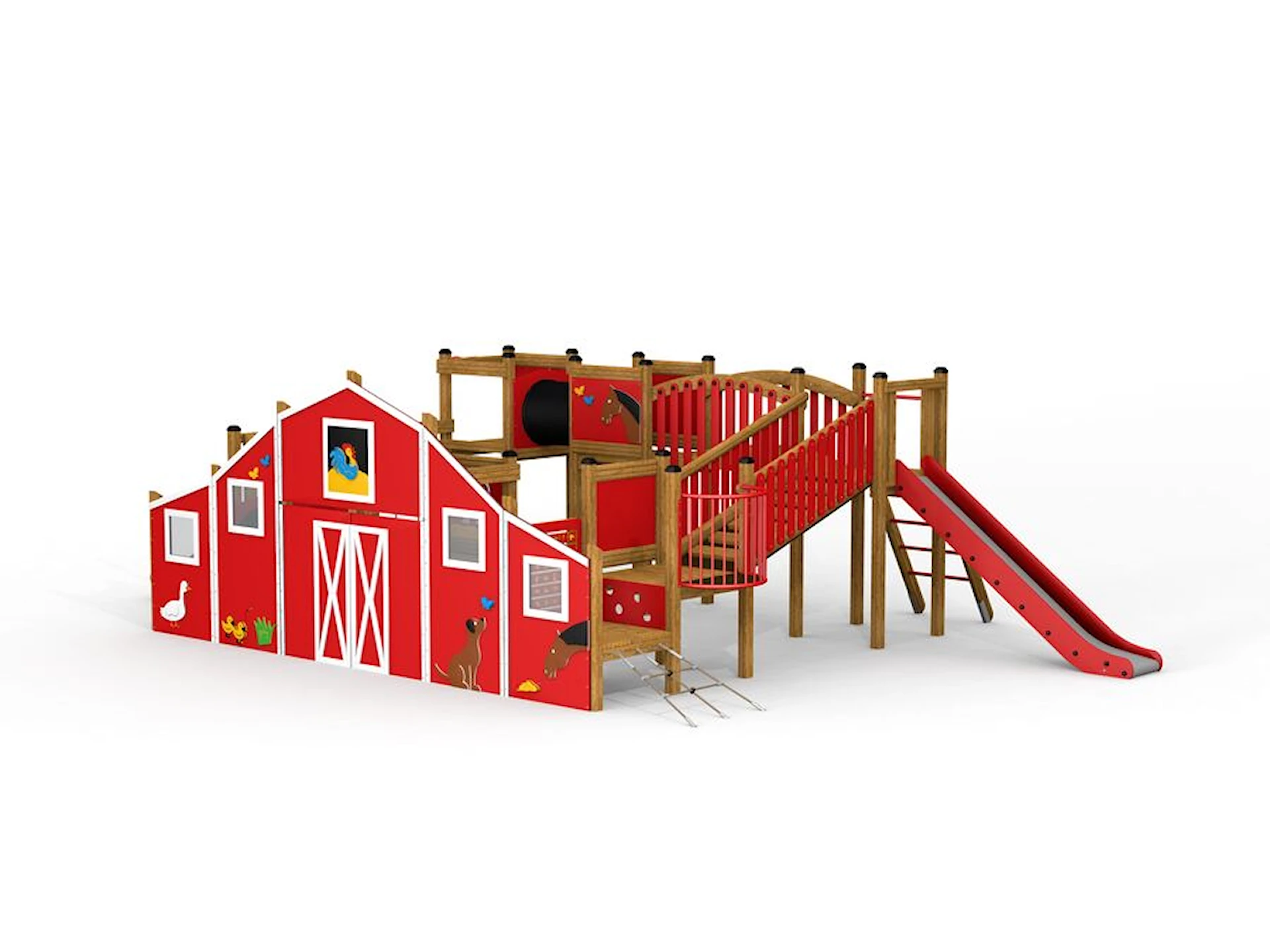 Komplettera gärna Bondgården med annan lekplatsutrustning, som gummidjur och fjädergungor, så har du snart skapat en komplett temalekplats för barn i alla åldrar.