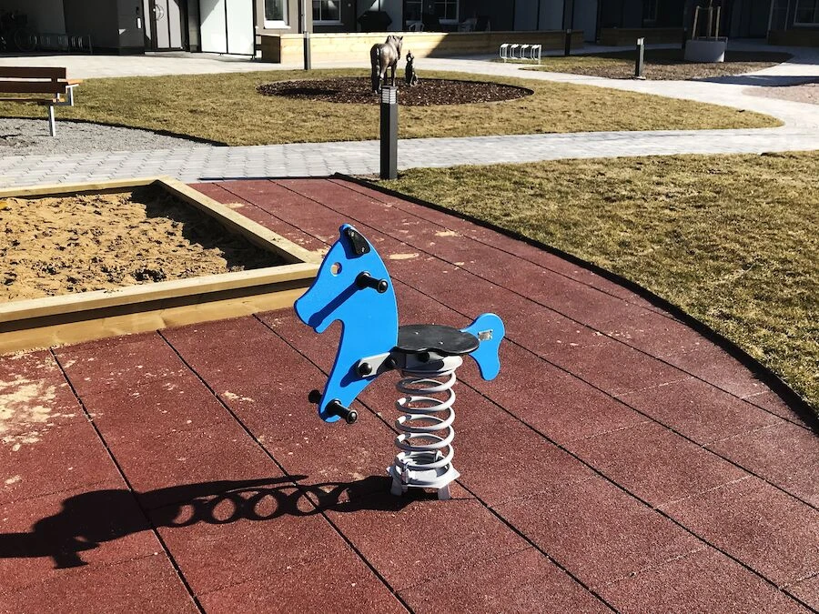 Däremot har vi många produkter utan trä som kan levereras i stort sett omgående, exempelvis Boulder Rocks, gungor, mål, basket, bordtennis, fristående rutschar, klätternät, studsmattor, bänkbord med mera.