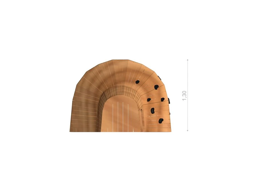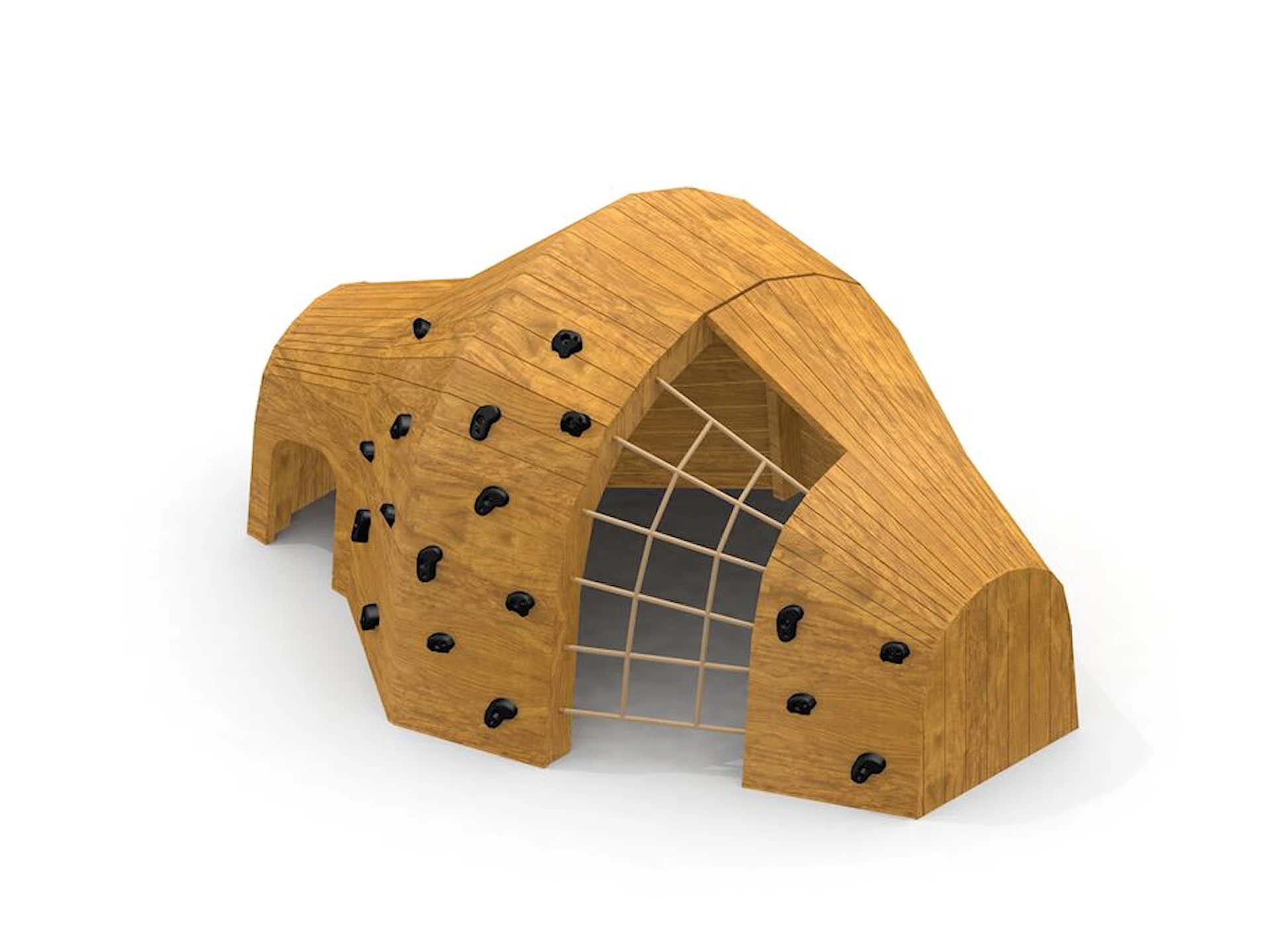 Invändigt skapas en ombonad lekmiljö som uppmuntrar till fantasifulla rollekar, vila och social samvaro. Den genomtänkta utformningen gör det enkelt för barnen att ta sig in och ut, samtidigt som konstruktionen ger en känsla av trygghet.