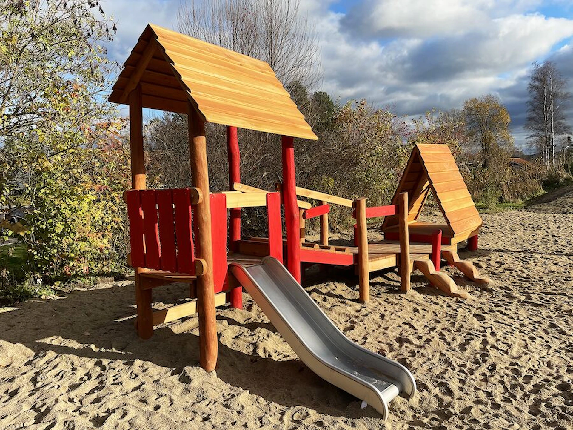 Däremot har vi många produkter utan trä som kan levereras i stort sett omgående, exempelvis Boulder Rocks, gungor, mål, basket, bordtennis, fristående rutschar, klätternät, studsmattor, bänkbord med mera.