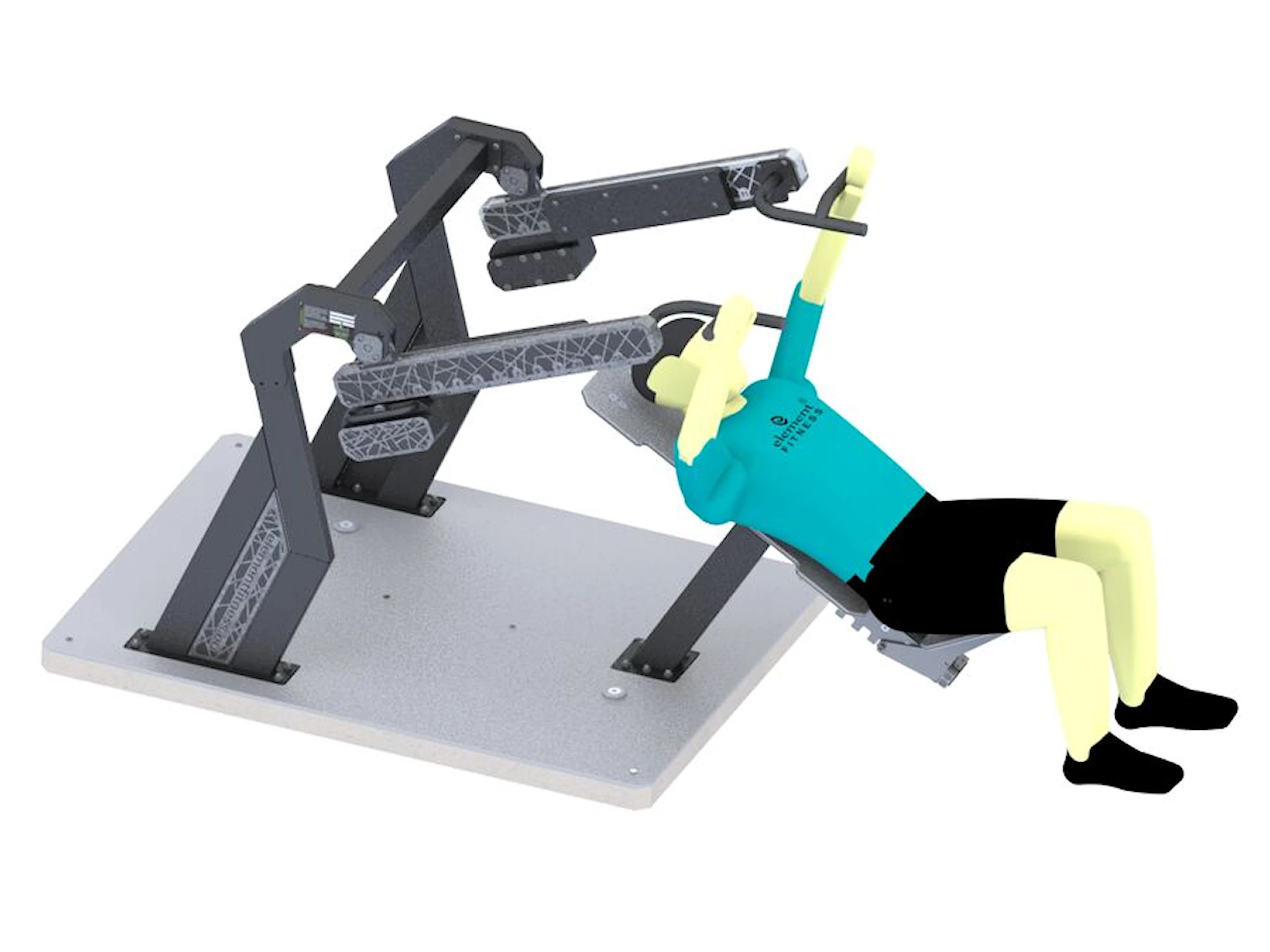 ElementFit Lutande Bänkpress är tillverkad av högkvalitativa material och kan användas i alla väderförhållande året runt. Den levereras färdigmonterad på en tunn betongplattform som är täckt med en hård plastplattform.