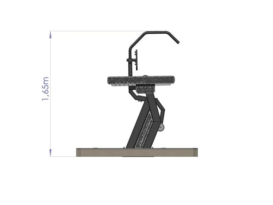 ElementFit Magtränare är tillverkad av högkvalitativa material och kan användas i alla väderförhållande året runt. Den levereras färdigmonterad på en tunn betongplattform som är täckt med en hård plastplattform.