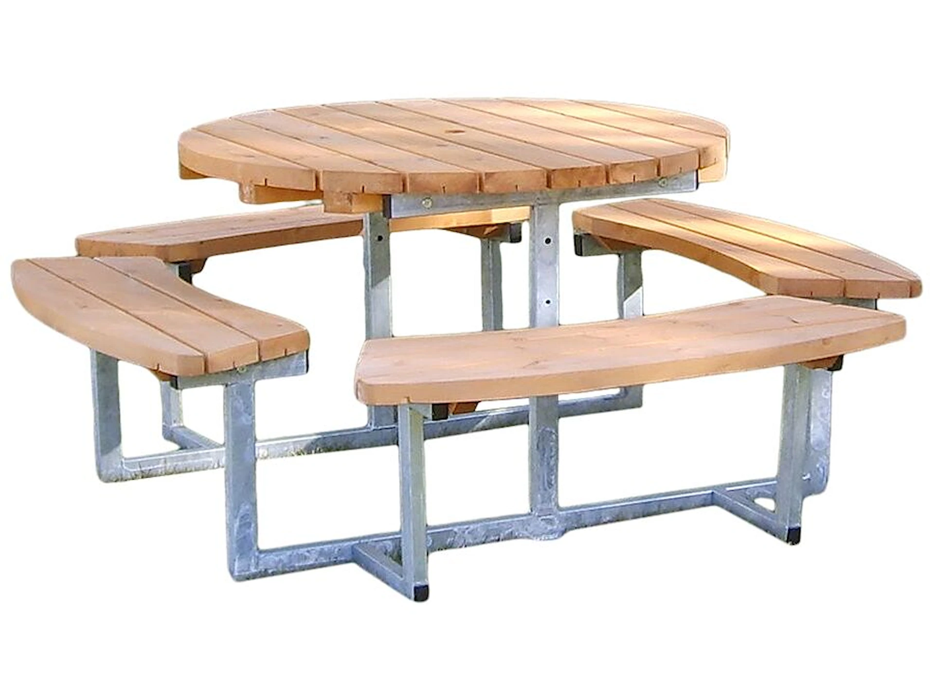 Träet är behandlat med ett vattenbaserat träskydd som skyddar mot solens UV-strålar. Bänkbordet är byggt på en varmförzinkad stålram (30 x 50 mm) för ökad stabilitet och hållbarhet. Förberett för fast montering, vilket gör det perfekt för offentliga utomhusområden. Sittdelen är 47 cm hög, och bordshöjden är 75 cm.