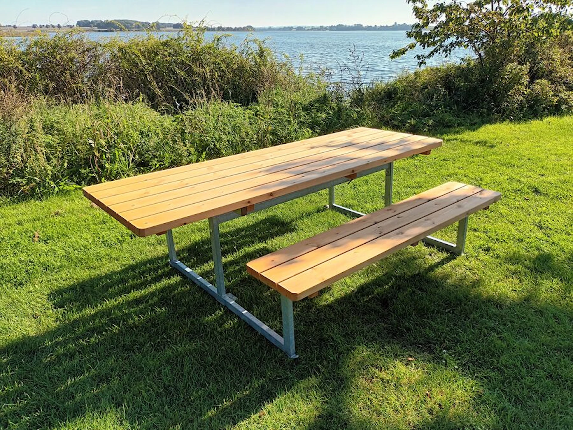 3 plankor i sitsen och 6 plankor i bordsskiva med rundade kanter, levereras färdigmonterade.