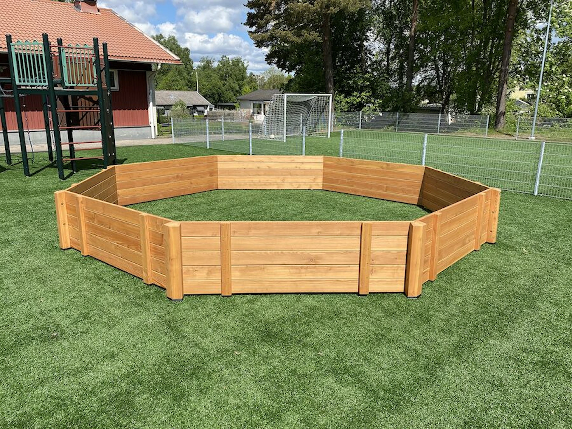 Däremot har vi många produkter utan trä som kan levereras i stort sett omgående, exempelvis Boulder Rocks, gungor, mål, basket, bordtennis, fristående rutschar, klätternät, studsmattor, bänkbord med mera.