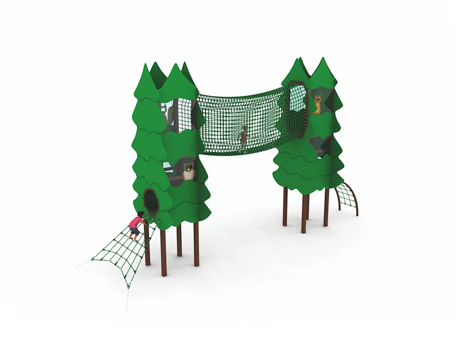 Inuti varje torn finns repkonstruktioner som bildar två fulla våningar och tre mellanplan, vilket möjliggör rörelse och kommunikation mellan nivåerna. Förflyttning mellan tornen sker genom en öppen nätgång av rep med ett tvärsnitt på 1,9 × 1,0 meter och en längd på 5,0 meter. Gångens botten är upphängd på en höjd av 3,5 meter.