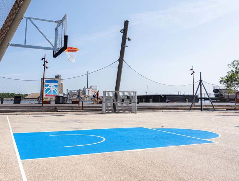 En modulär lösning som ger en stabil och behaglig yta att spela på. Levereras med planmarkeringar direkt på golvplattorna. Lösningen är FIBA-certifierad för matchbruk i 3x3 basket och är lämplig för både temporär installation vid evenemang eller som en permanent plan.