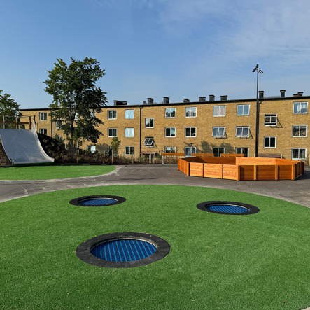 Däremot har vi många produkter utan trä som kan levereras i stort sett omgående, exempelvis Boulder Rocks, gungor, mål, basket, bordtennis, fristående rutschar, klätternät, studsmattor, bänkbord med mera.