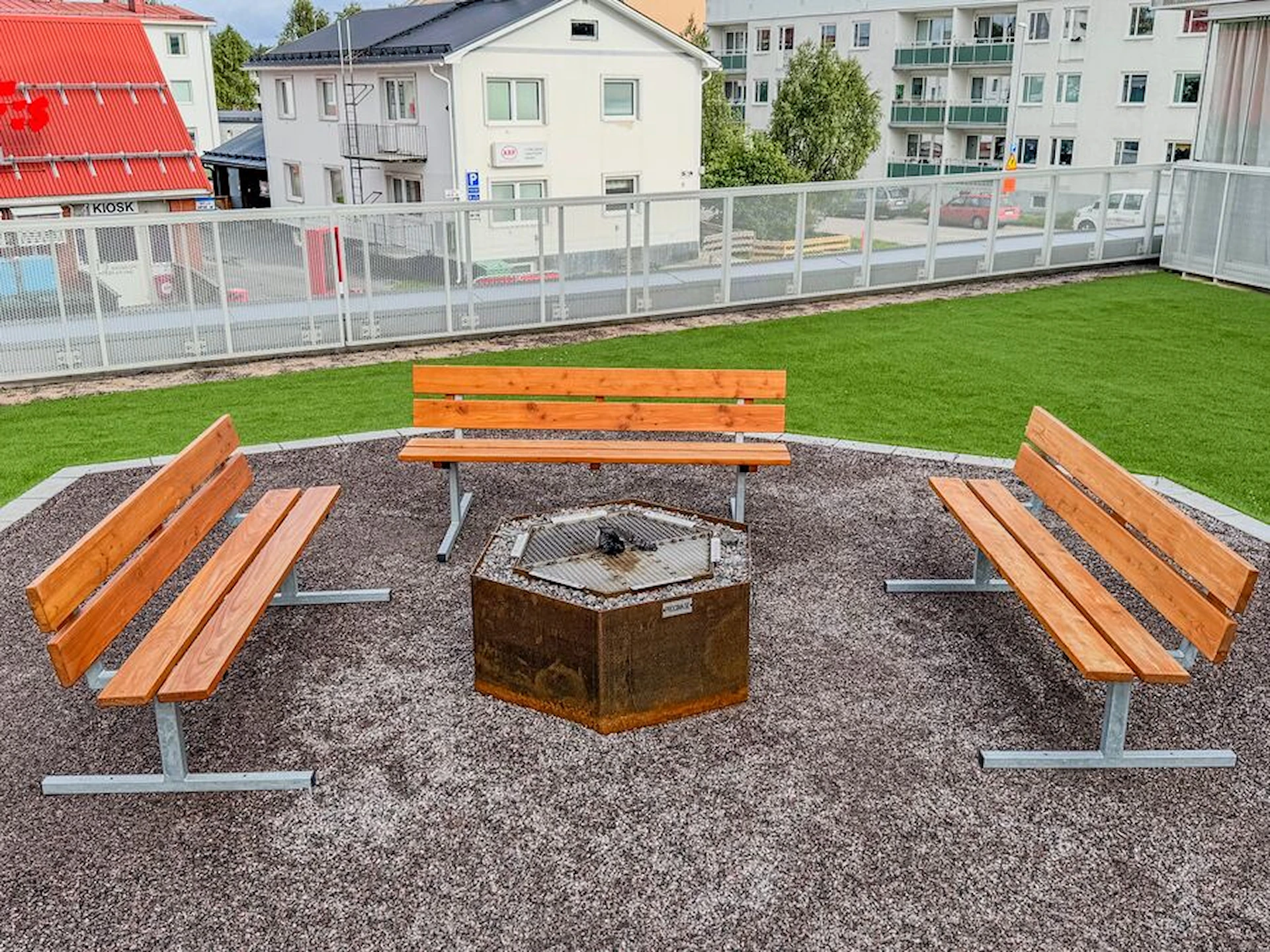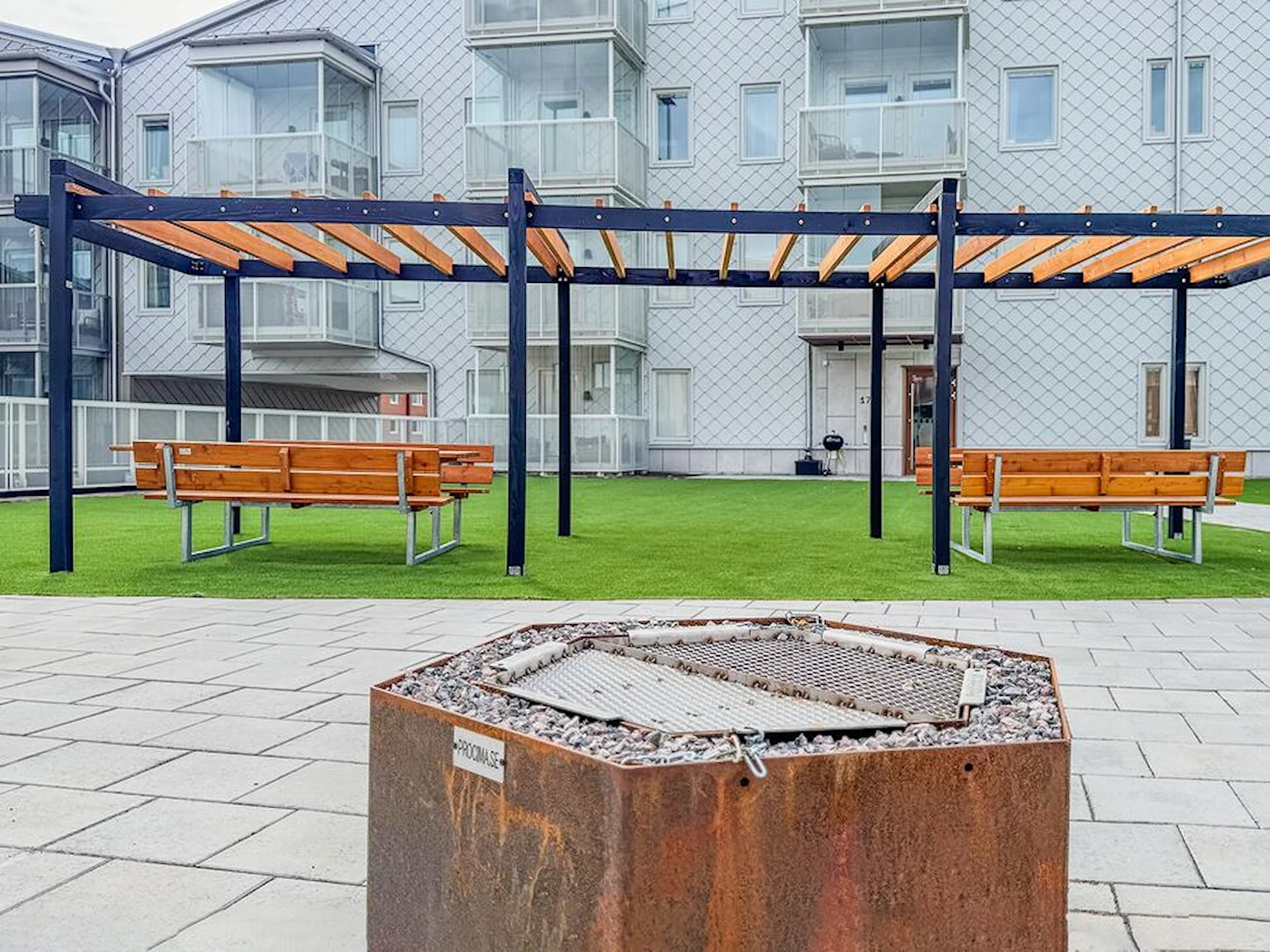 Genom att fylla utrymmet mellan yttre och inre vägg med sand kan risken för brännskador minimeras vilket ger en säkrare grillplats. Det går åt cirka 70 liter sand/småsten i utrymmet.