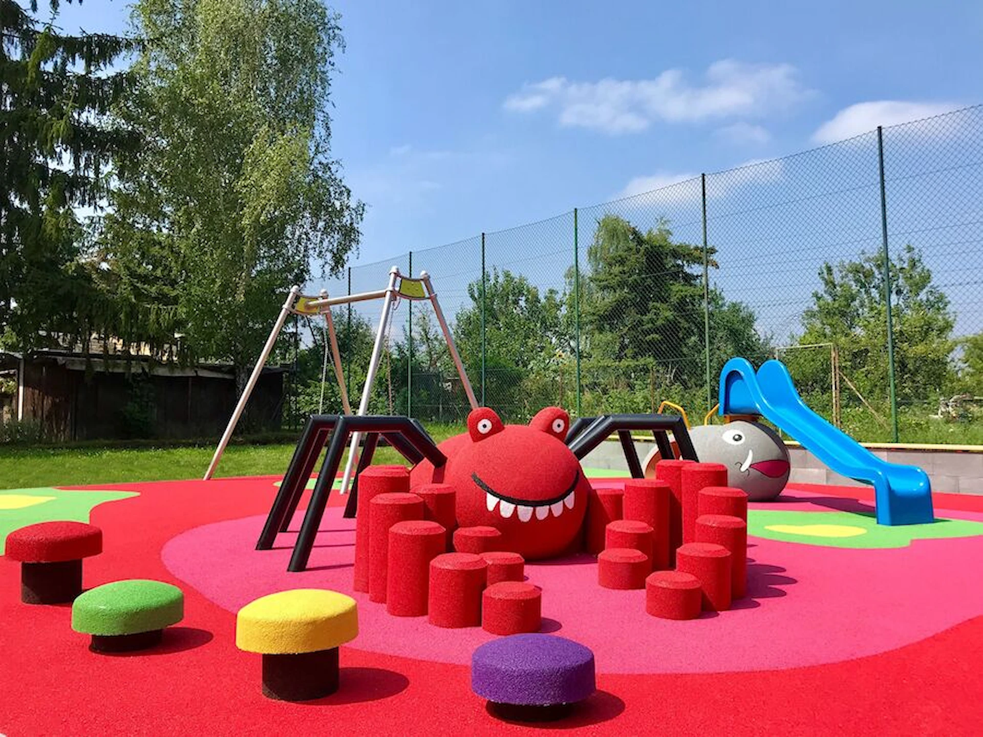 Däremot har vi många produkter utan trä som kan levereras i stort sett omgående, exempelvis Boulder Rocks, gungor, mål, basket, bordtennis, fristående rutschar, klätternät, studsmattor, bänkbord med mera.