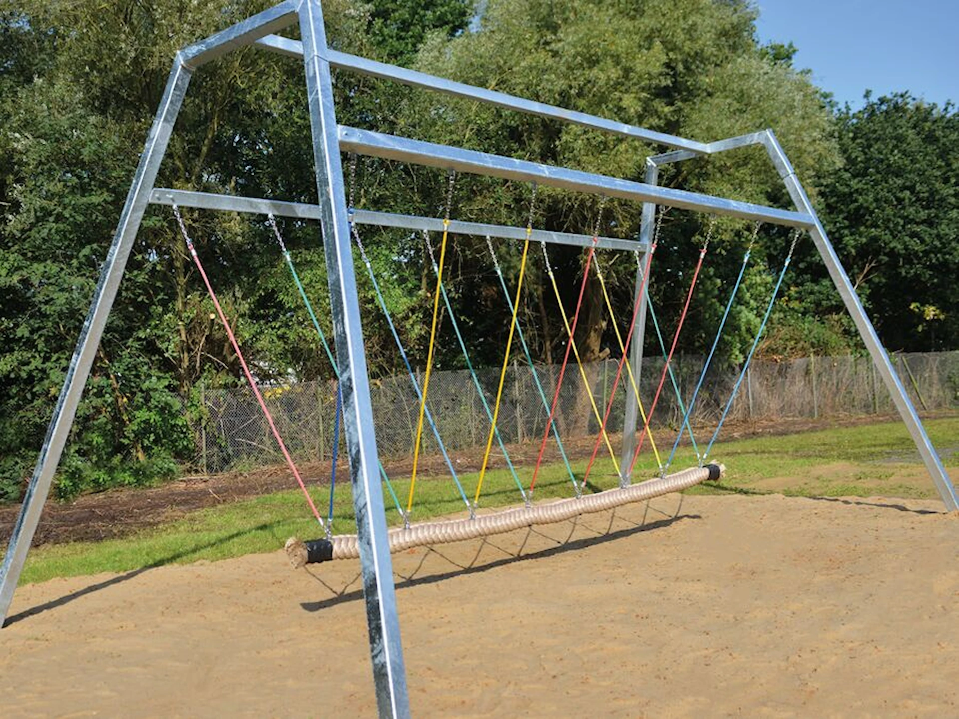 Den kraftiga ramen är tillverkad av varmförzinkat stål, vilket ger hög styrka och lång hållbarhet i utomhusmiljöer. Konstruktionen är designad för intensiv användning och passar perfekt för skolgårdar, fritidshem, parker och andra offentliga lekplatser.