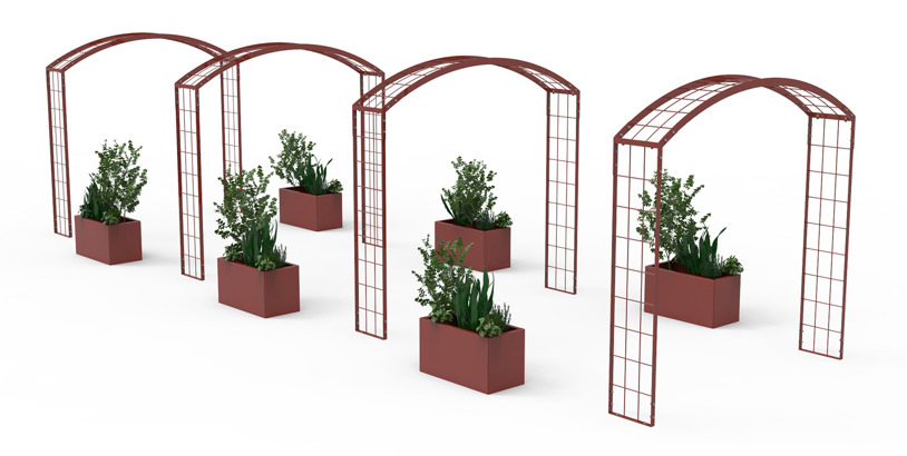 Utöver sin estetiska dragningskraft fungerar ARCUS-portalerna perfekt som effektiva stöd för klätterväxter. Här kan du skapa levande, gröna tunnlar och passager. Genom att kombinera portalerna med Ballota Planteringskärl kan man enkelt integrera växtlighet vid portalernas bas, vilket främjar biologisk mångfald och skapar en inbjudande atmosfär för besökare.