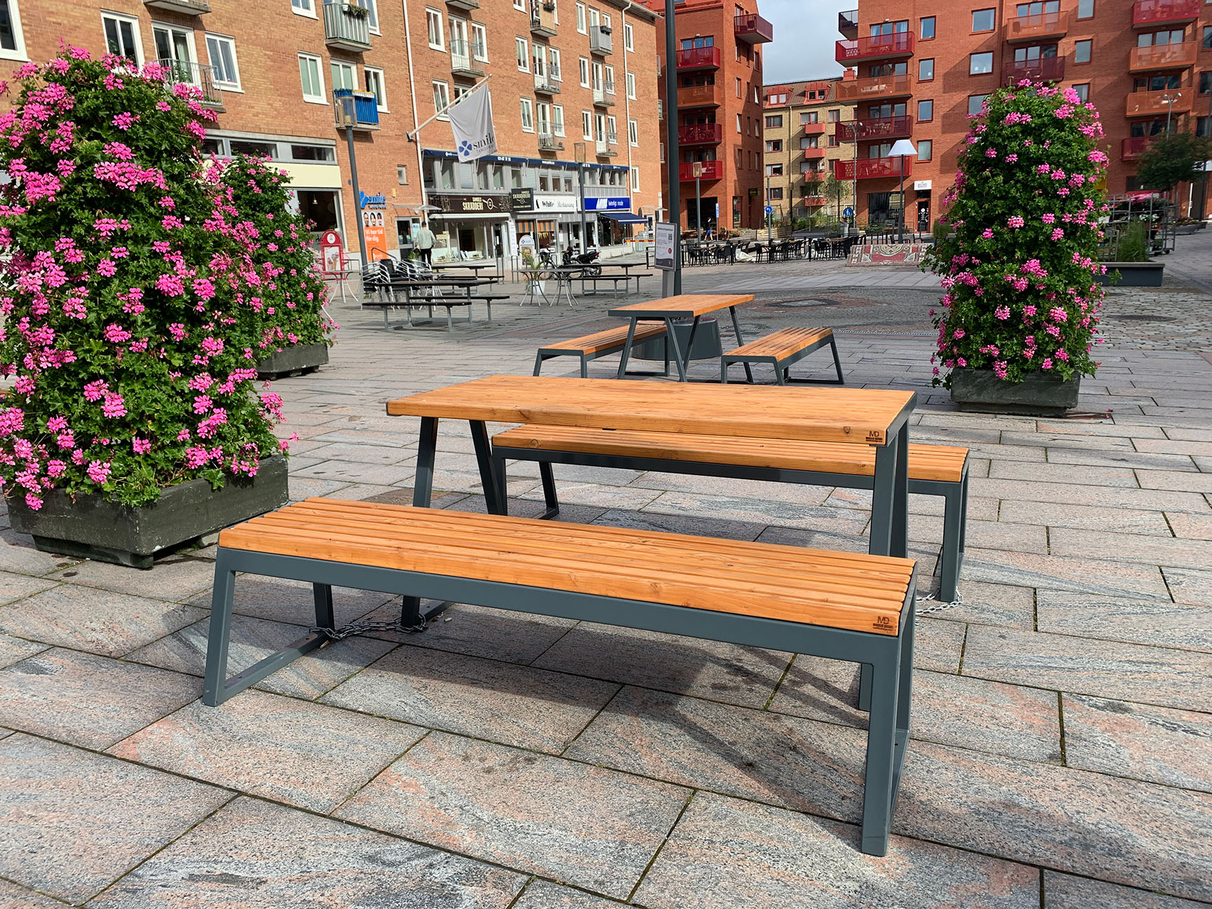 - Innergårdar och bostadsområden – Förbättra trivseln och skapa sociala ytor med sammanhängande möblering som tål daglig användning.