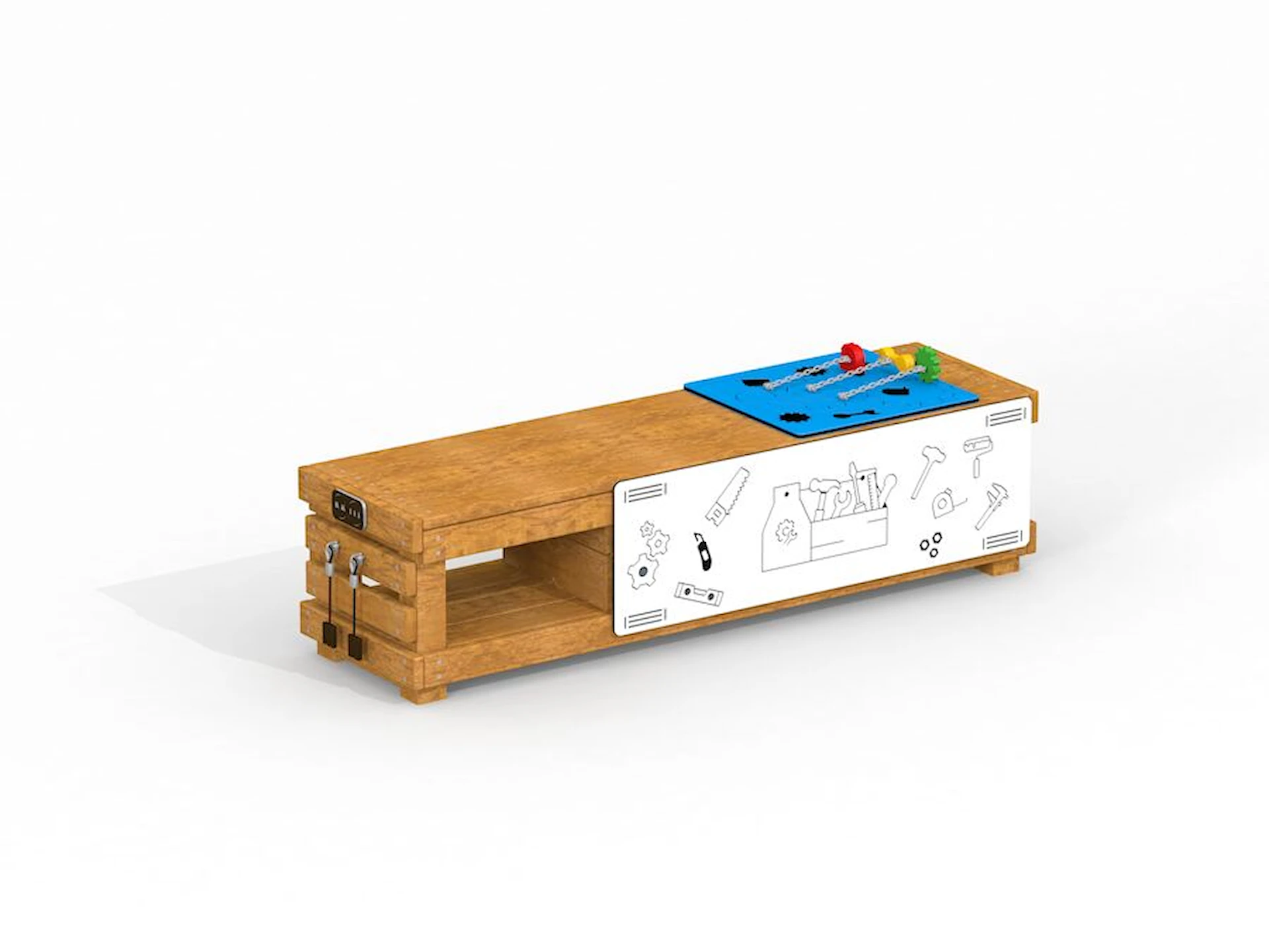 Snickarbänken tillhör ett tema som vi kallar Samhälle, där barnen kan interagera med varandra i rollekar som liknar vardagliga situationer och välkända platser ute i samhället. Snickarbänken tillhör vår Modern Nature-serie där du hittar fler lekplatsprodukter till ditt projekt.