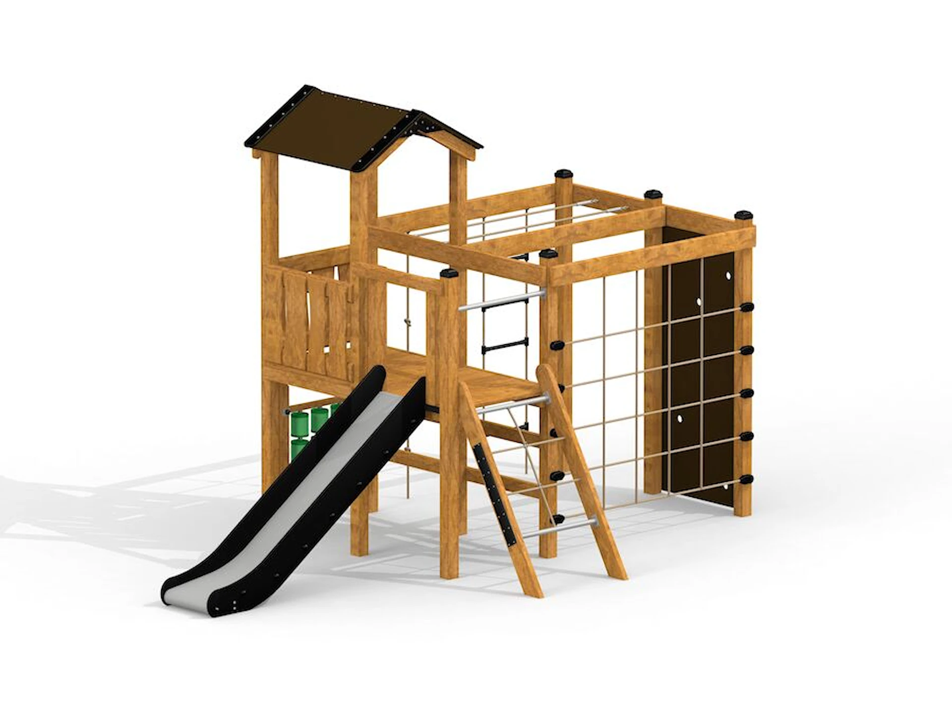 Däremot har vi många produkter utan trä som kan levereras i stort sett omgående, exempelvis Boulder Rocks, gungor, mål, basket, bordtennis, fristående rutschar, klätternät, studsmattor, bänkbord med mera.