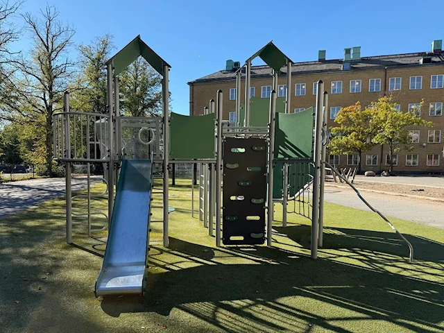 - Dessa lekställningar har halkfri HPL i trappor och golv