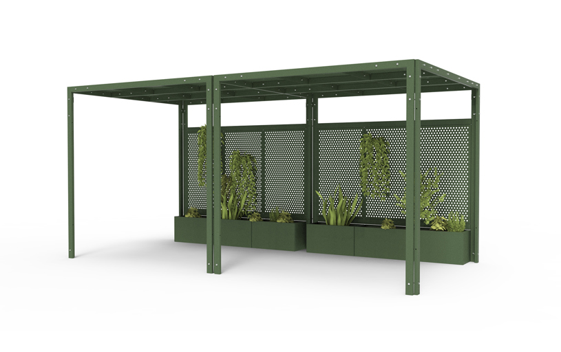 För att fylla en sektion mellan två stolpar på din Ballota Pergola behöver du 3 stora eller 6 små planteringskärl.