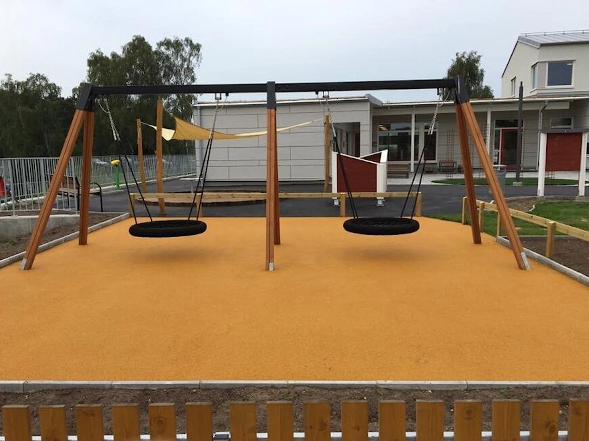 Däremot har vi många produkter utan trä som kan levereras i stort sett omgående, exempelvis Boulder Rocks, gungor, mål, basket, bordtennis, fristående rutschar, klätternät, studsmattor, bänkbord med mera.