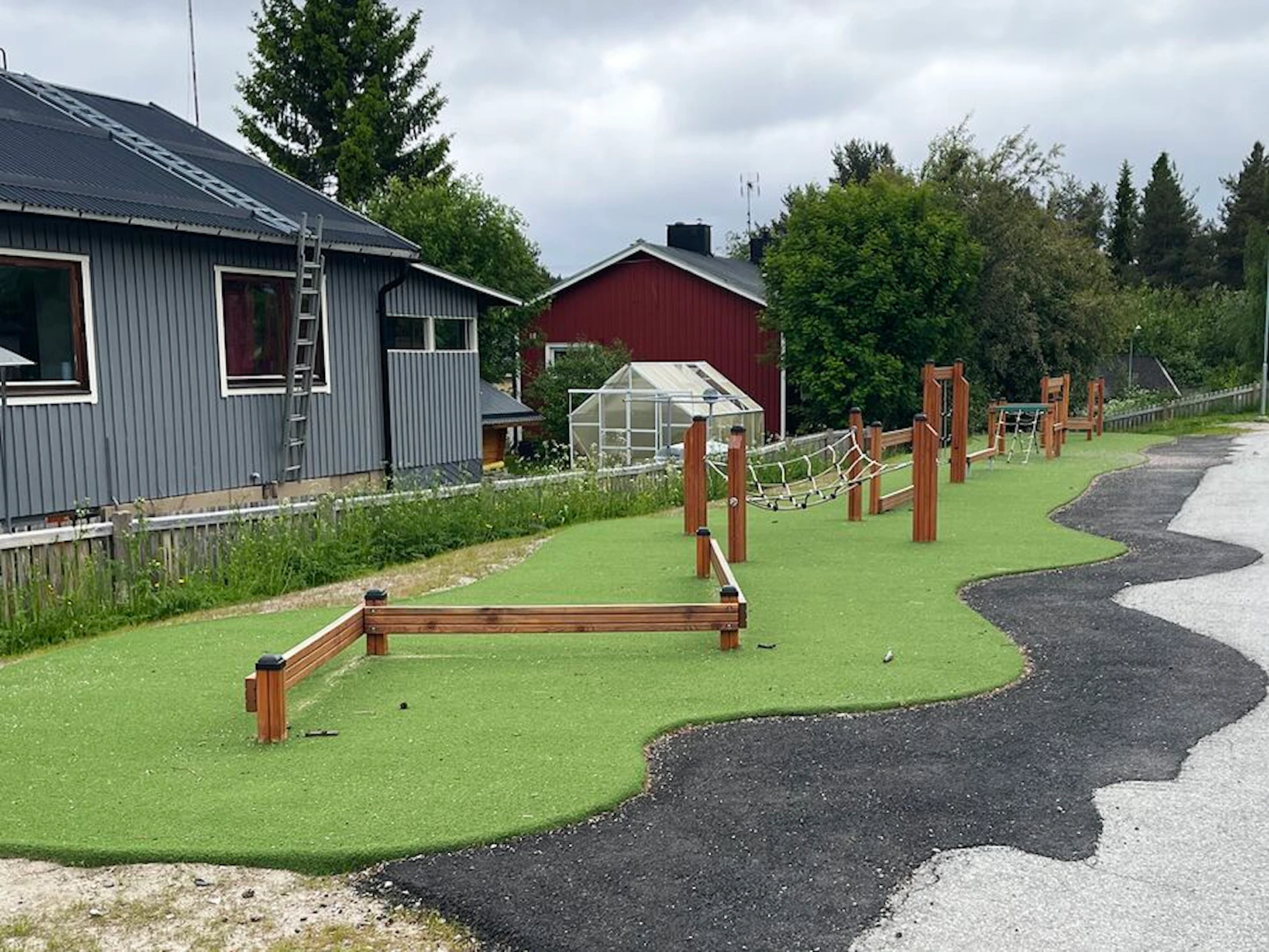 Däremot har vi många produkter utan trä som kan levereras i stort sett omgående, exempelvis Boulder Rocks, gungor, mål, basket, bordtennis, fristående rutschar, klätternät, studsmattor, bänkbord med mera.