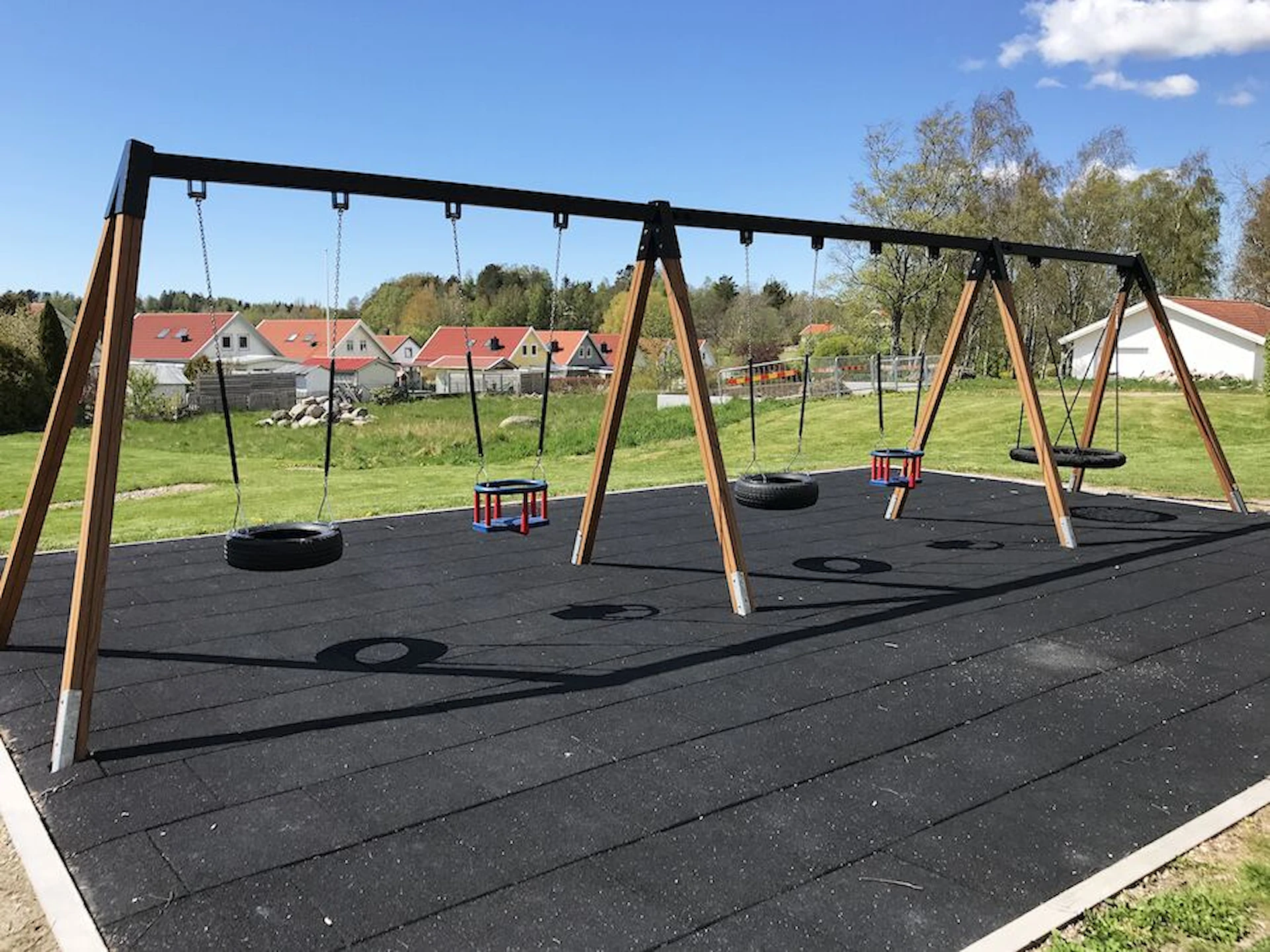 Däremot har vi många produkter utan trä som kan levereras i stort sett omgående, exempelvis Boulder Rocks, gungor, mål, basket, bordtennis, fristående rutschar, klätternät, studsmattor, bänkbord med mera.