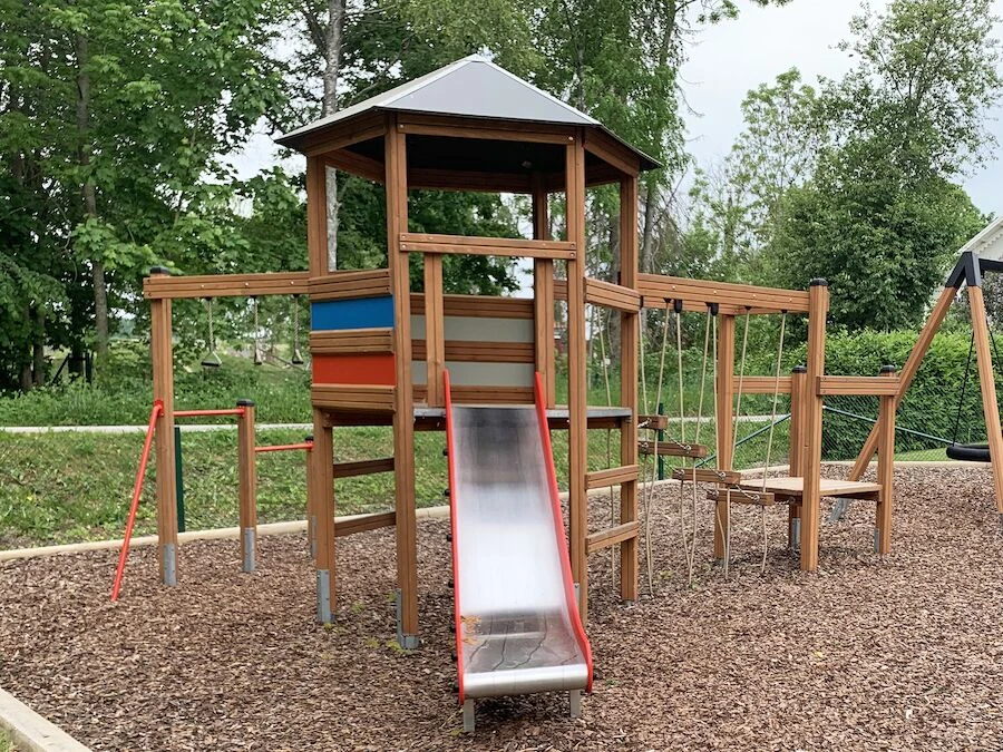 Däremot har vi många produkter utan trä som kan levereras i stort sett omgående, exempelvis Boulder Rocks, gungor, mål, basket, bordtennis, fristående rutschar, klätternät, studsmattor, bänkbord med mera.