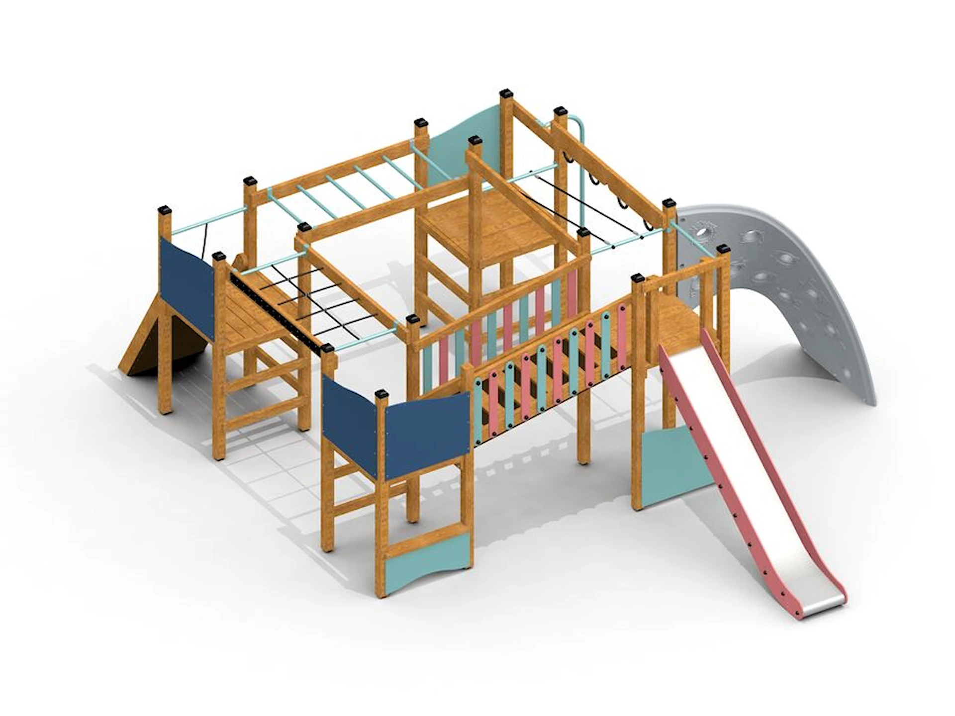 Däremot har vi många produkter utan trä som kan levereras i stort sett omgående, exempelvis Boulder Rocks, gungor, mål, basket, bordtennis, fristående rutschar, klätternät, studsmattor, bänkbord med mera.