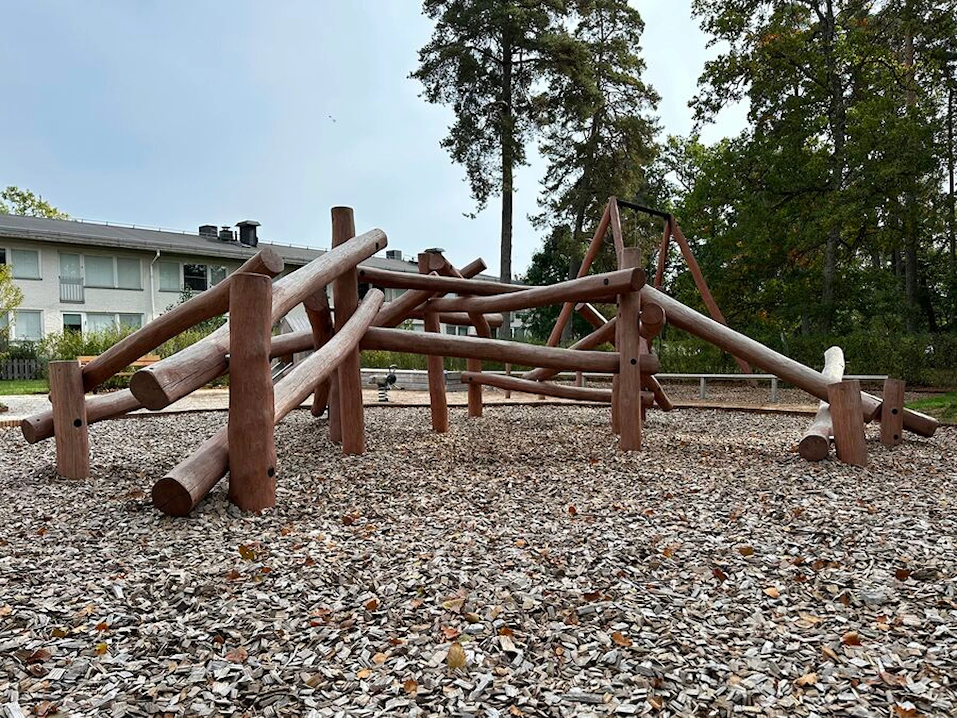 Däremot har vi många produkter utan trä som kan levereras i stort sett omgående, exempelvis Boulder Rocks, gungor, mål, basket, bordtennis, fristående rutschar, klätternät, studsmattor, bänkbord med mera.