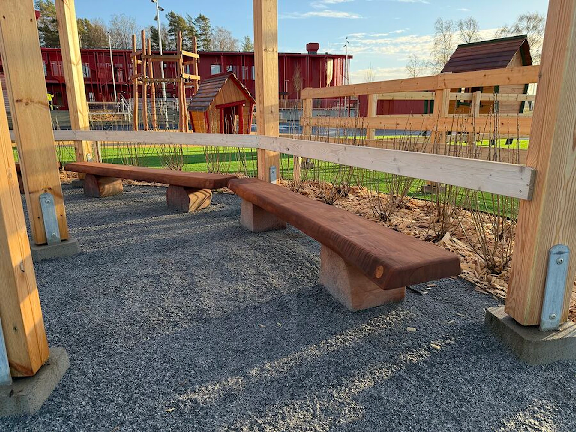 Däremot har vi många produkter utan trä som kan levereras i stort sett omgående, exempelvis Boulder Rocks, gungor, mål, basket, bordtennis, fristående rutschar, klätternät, studsmattor, bänkbord med mera.