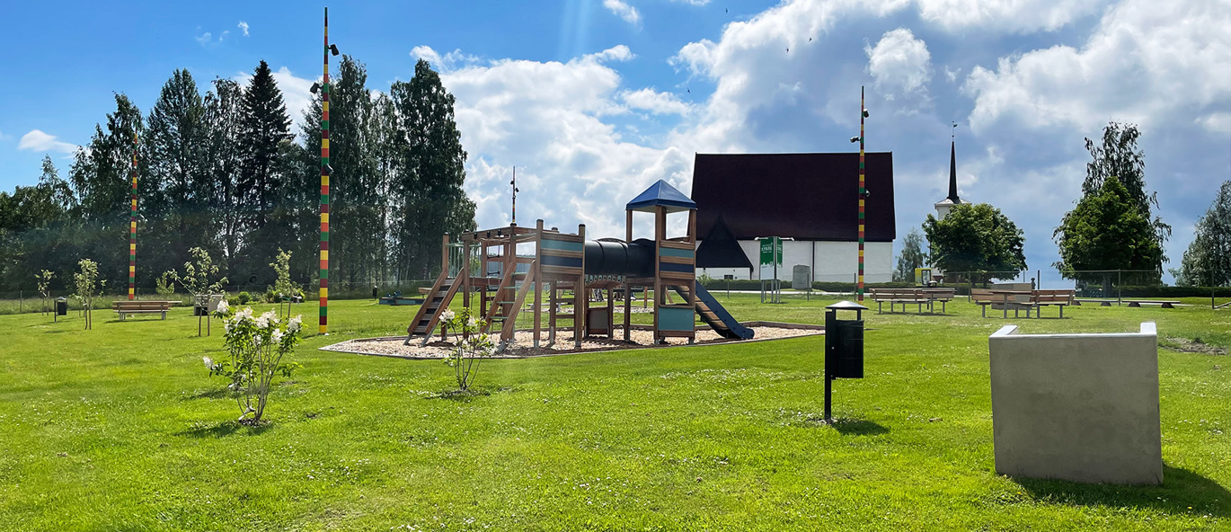Svenska Kyrkan ringde vår säljare Jesper och berättade att dom fått ett arv från en församlingsmedlem som gått bort. Kvinnans önskan var att pengarna skulle gå till att göra något fint för ungdomarna. Efter ett möte, lite skissande och förslag blev resultatet en riktigt trevlig utemiljö med både lek, utegym och sittytor.