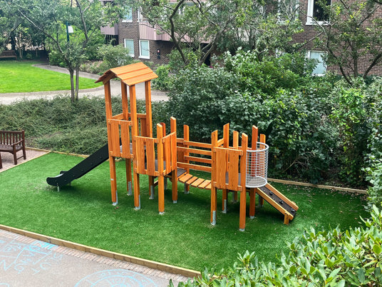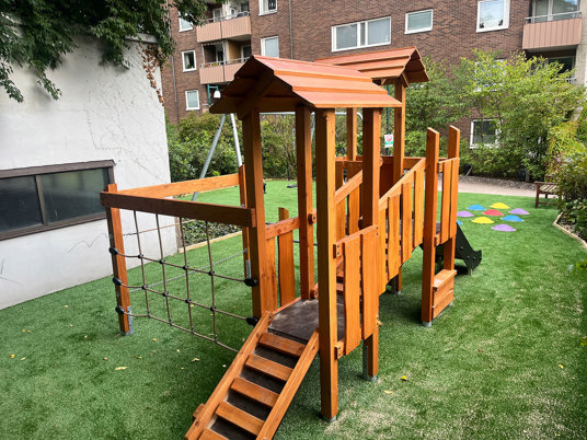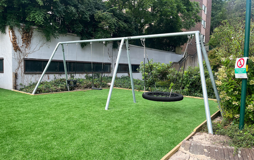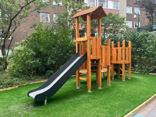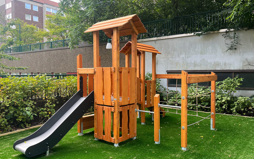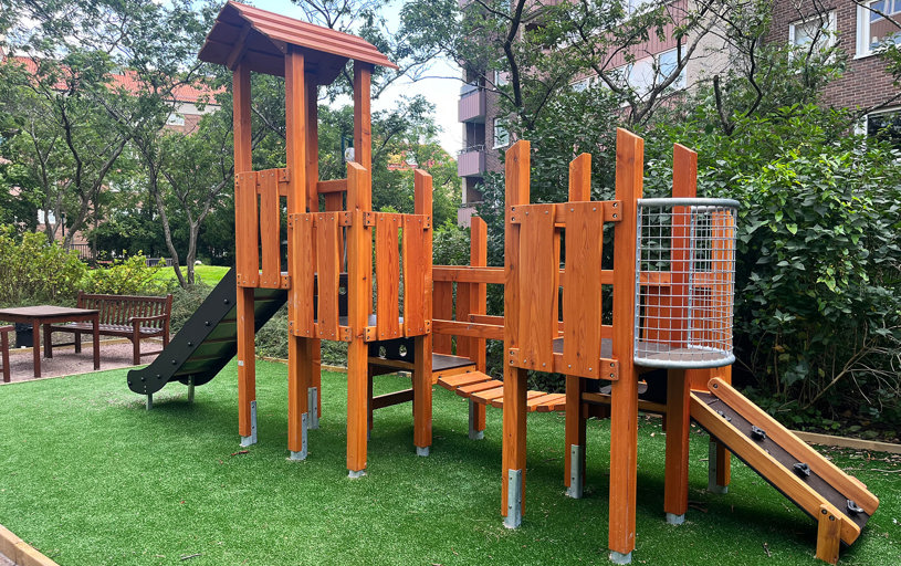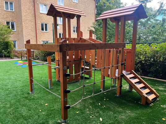 Trots att ytan byggdes om från grunden gick arbetet snabbt och effektivt. Hela projektet färdigställdes på väldigt kort tid. För att skapa en trygg och trivsam lekmiljö kompletterades anläggningen med mjukt och stötdämpande konstgräs och fallskyddsgummi som fungerar som säkra underlag under lekställningarna.