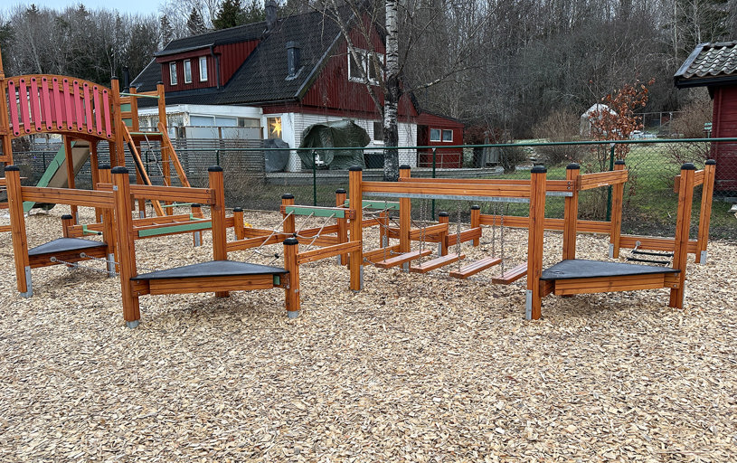 Den fina mixen av låg balansbana, hög klätterställning och olika gungsitsar gör att alla barn kan hitta utmaningar på sin nivå.