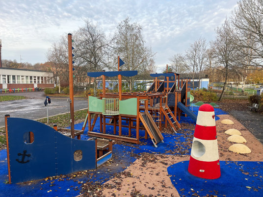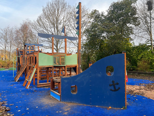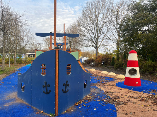 Den tidigare lekutrustningen ses över och återanvänds delvis, medan det nya megafartyget sätter tonen. Här ryms många barn samtidigt – perfekt för både temalek och plattformslek.