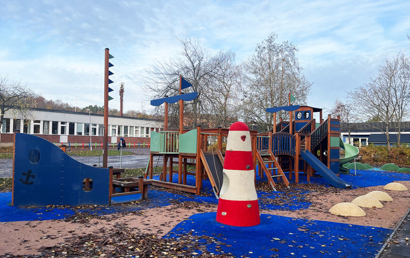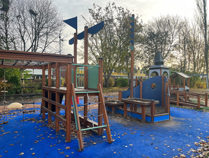 Mitt i hjärtat av Hulan i Lerums kommun har en helt ny lekplats tagit form – ett megafartyg fyllt med lek, äventyr och fantasi. Med havstema, klättring, rutschkanor och många plattformar bjuder fartyget in barn från tre år och uppåt till roliga, aktiva och kreativa stunder. Placeringen mitt i områdets vardagspuls gör lekplatsen till en självklar mötesplats för både boende och skolbarn, och ersätter den gamla lekutrustningen som gjort sitt. Nu seglar Hulan vidare med en lekplats som kombinerar tillgänglighet, temalek och folkhälsovärde – allt i ett.