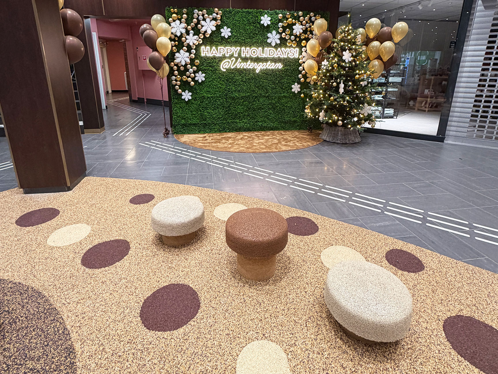 I Galleria Vintergatan har rymdtema, meteoriter och små balansfigurer blivit en naturlig del av gallerian och bjuder barnen på klättring, balans och fantasifull lek.
