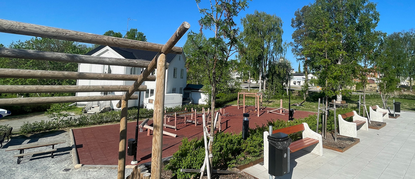 Ett fantastisk ansiktslyft i centrala Bjurholm där satsningen på fina sittmöjligheter och en aktiverande lekplats har blivit ett givet utflyktsmål.