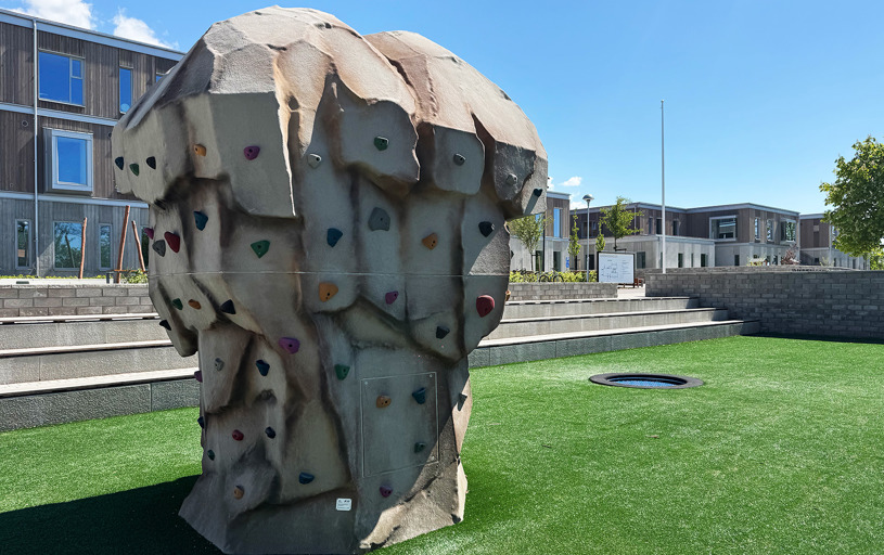 Skolgården erbjuder en varierad lekplats med gungor, rutschkana, marktrampoliner, klättersten och hinderbana. Lekutrustningen uppmuntrar till motorisk utveckling, balans och kreativ lek – anpassad för olika åldrar och förutsättningar.